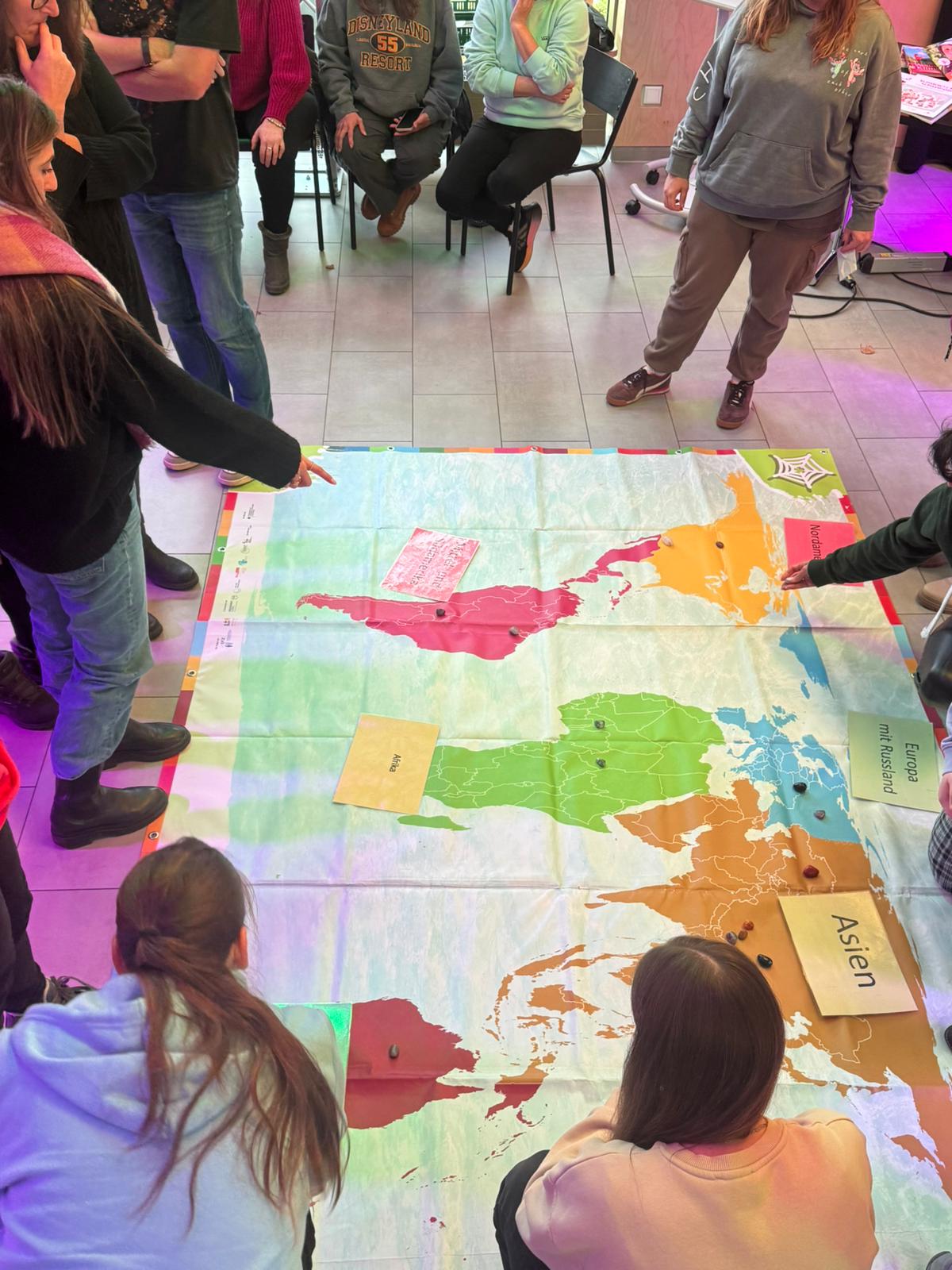 Eine Dozentin aus einer Umweltstation informierte uns über den aktuellen Stand rund um Klimaschutz, Nachhaltigkeit und globale Zusammenhänge. Besonders eindrucksvoll war die bildliche Darstellung der weltweiten Ressourcenverteilung, die deutlich machte, wie ungleich die Lebensbedingungen auf unserer Erde sind.
