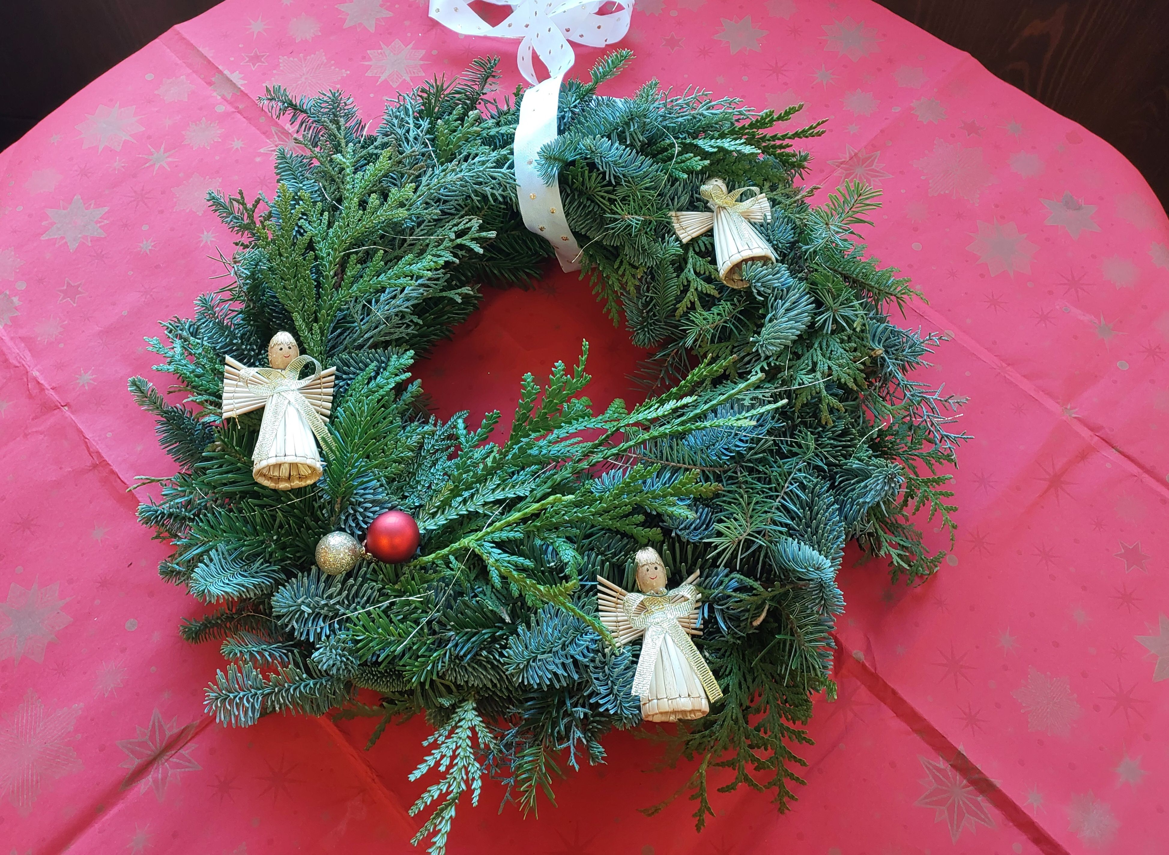 Wie jedes Jahr binden wir kurz vor dem ersten Advent gemeinsam unsere Adventskränze und genießen den Duft von frischem Tannengrün.