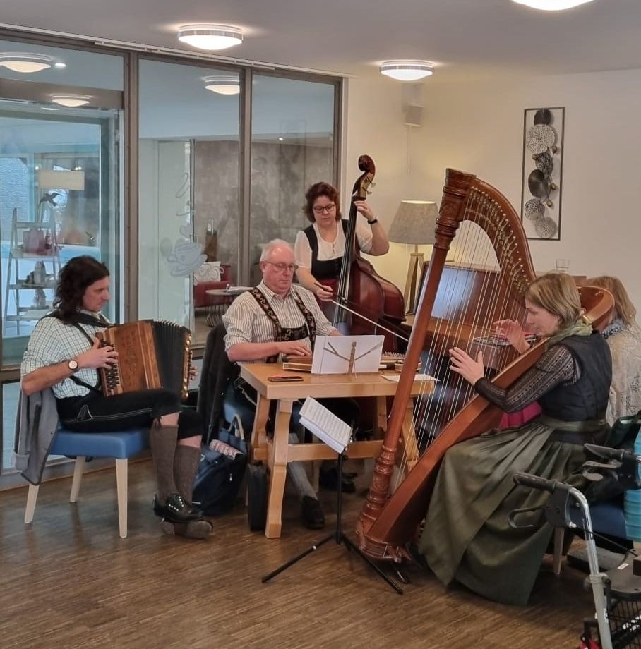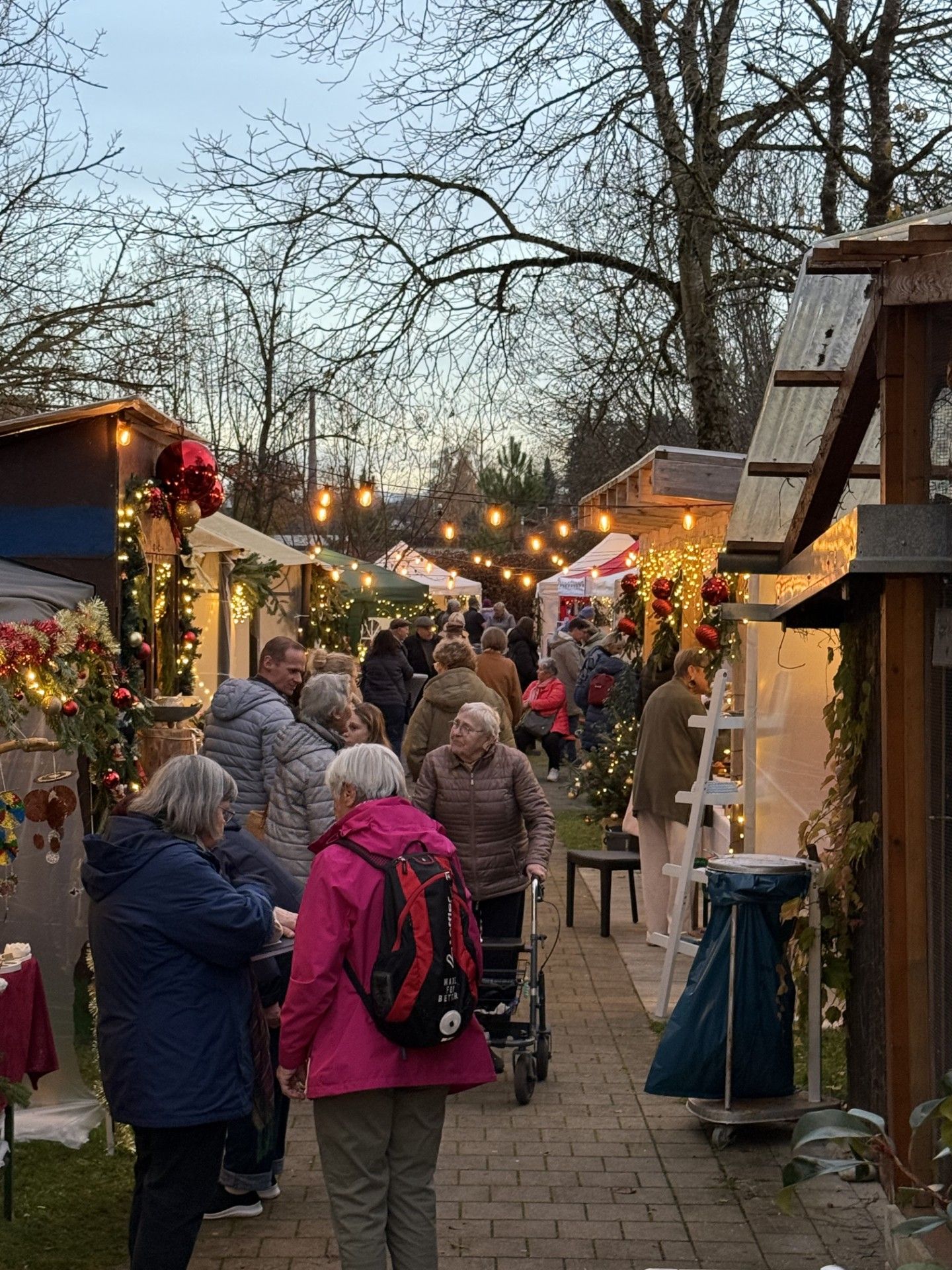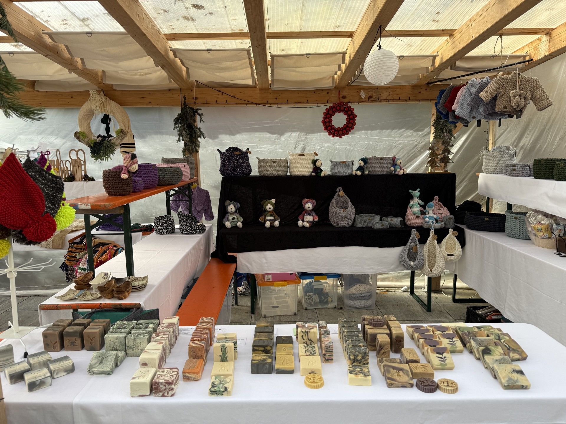 Am 14.11.25 und 15.11.25 fand auch dieses Jahr wieder unser Winterzaubermarkt in der Einrichtung statt. Liebevoll geschmückte Verkaufsstände, mit vielfältigen Angeboten, schmückten unseren Garten. Ein Lichtermeer begleitete unsere Besucher durch das bunte Markttreiben. Selbstgemachte Seifen und Handarbeiten erwarteten die Besucher. Von Holz über Ton, bunte Stoffe und Häkelarbeiten war alles geboten. Unsere Küche bereitete Langosz und Bosna zu. Auch selbstgemachte Crêpes und Popcorn versüßten den Besuch. Ein buntes Musikangebot lud zum Lauschen und verweilen ein. Die Tenglinger Stubenmusik, der Drehorgelspieler Joachim Voit und unsere Veeh-Harfen Gruppe “No Name” beschenkten uns mit den Klängen ihrer Instrumente.