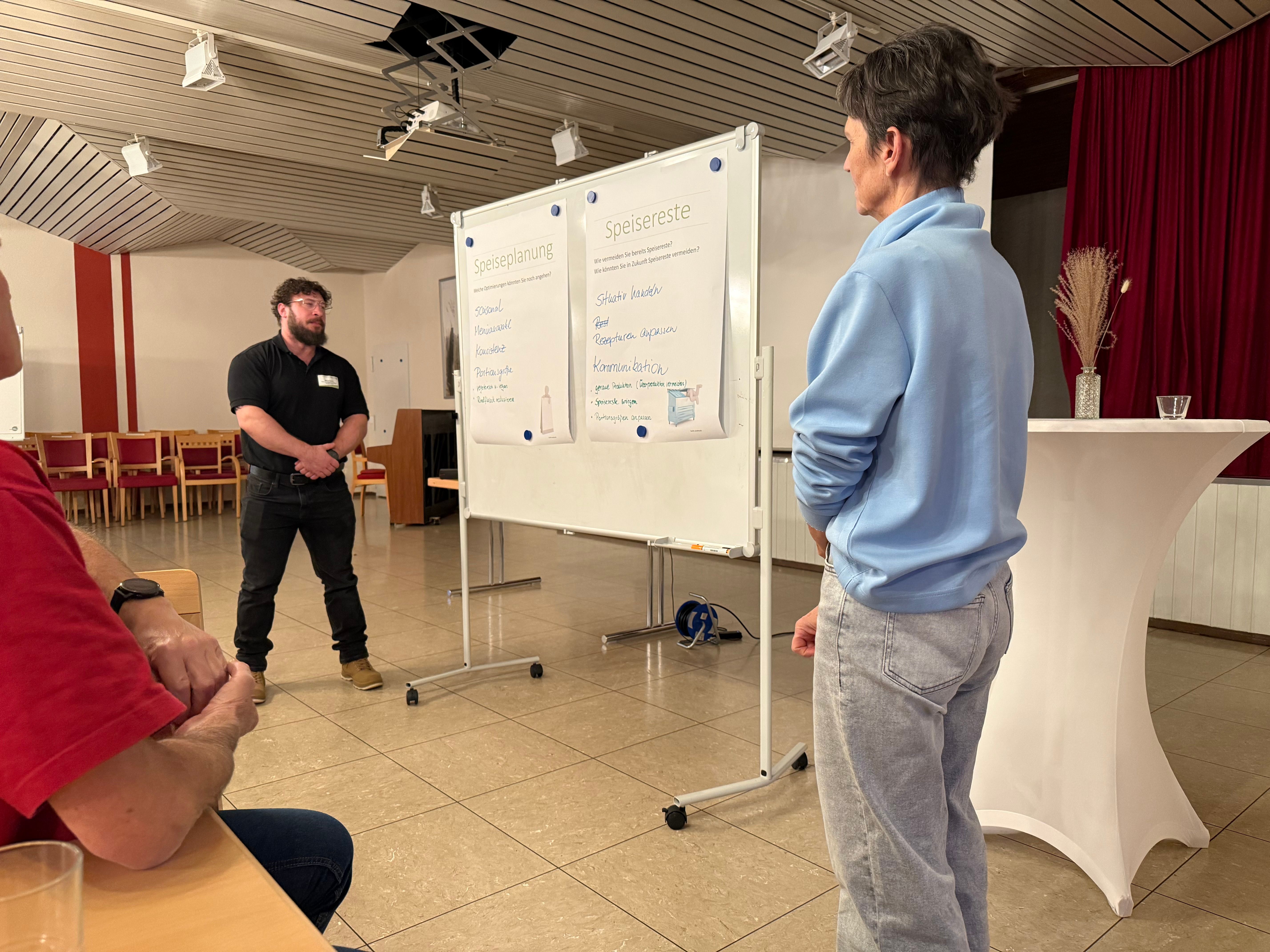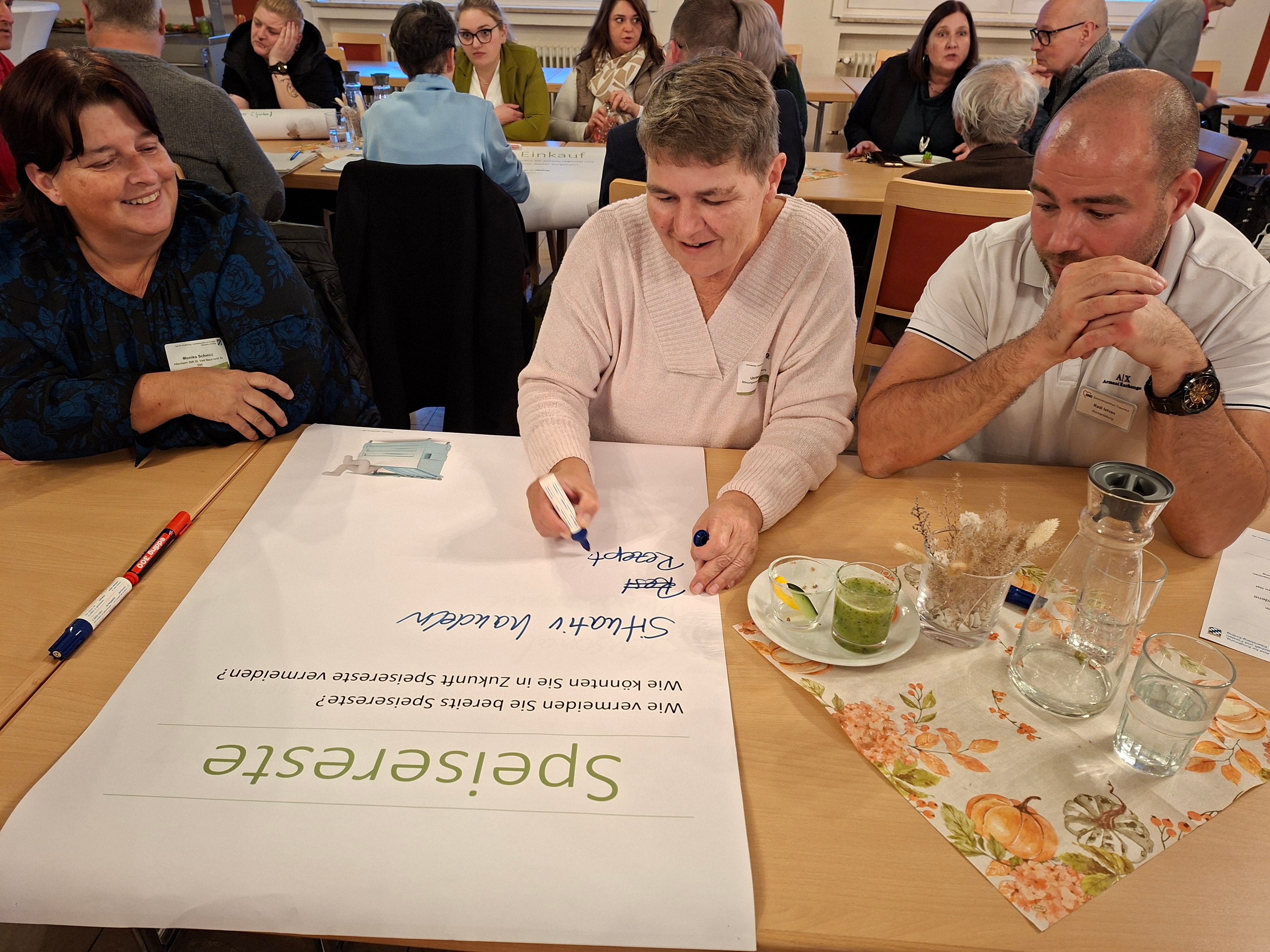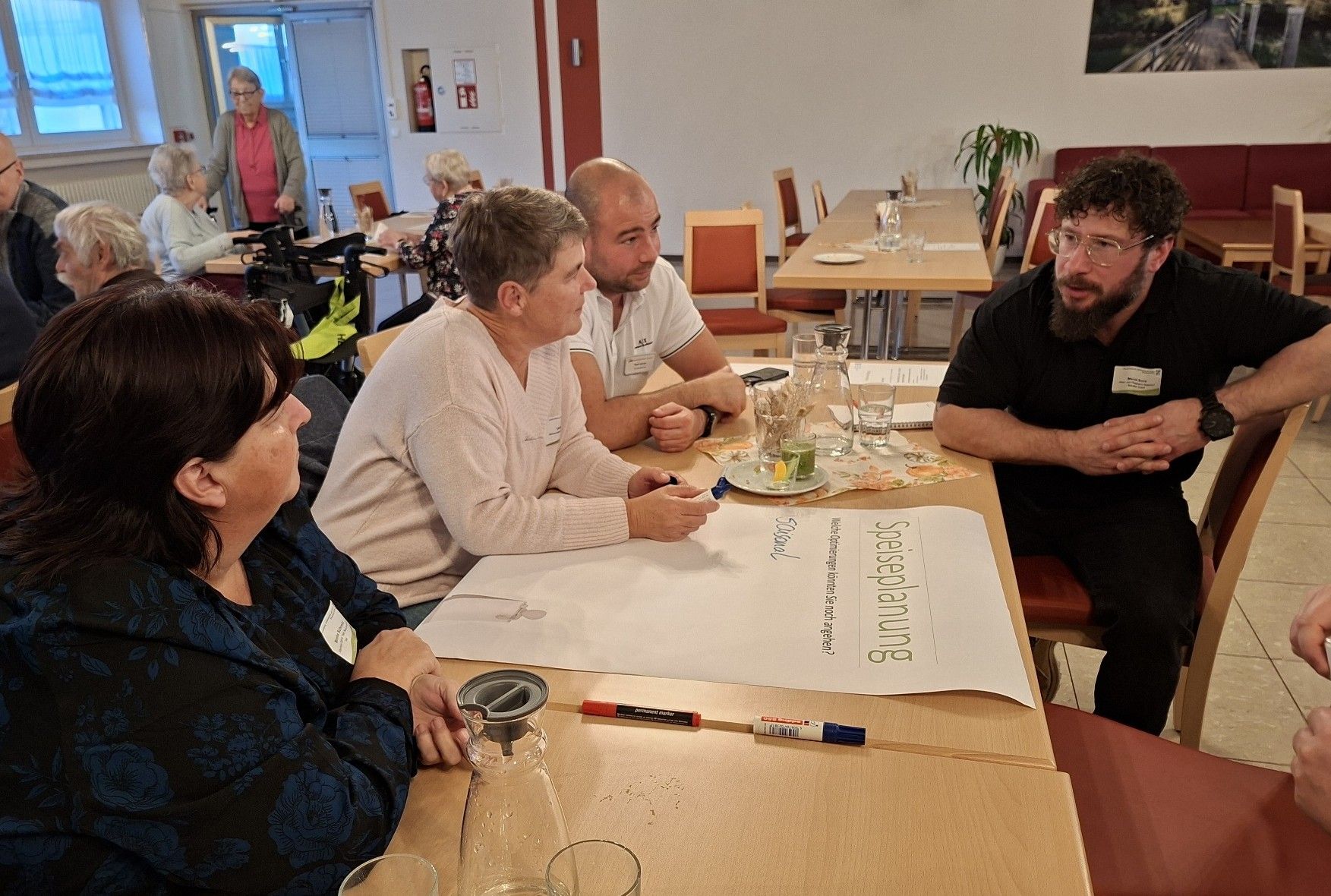 Im anschließenden Austausch mit Vertreterinnen und Vertretern anderer Senioreneinrichtungen ging es um individuelle Wege zu mehr Klimaschutz in der Gemeinschaftsverpflegung. Trotz unterschiedlicher Voraussetzungen zeigte sich: Viele kleine Schritte können gemeinsam Großes bewirken.