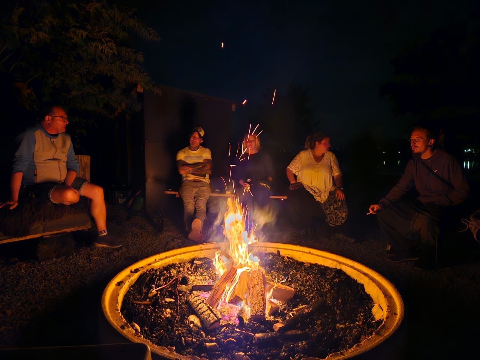 Am Abend wurde es dann richtig gemütlich: Wir haben ein großes Lagerfeuer entzündet 🔥, uns im Kreis zusammengesetzt und bis spät in die Nacht gequatscht, gelacht und einfach die gemeinsame Zeit genossen. Das perfekte Ende für einen perfekten Tag – gleich zweimal.