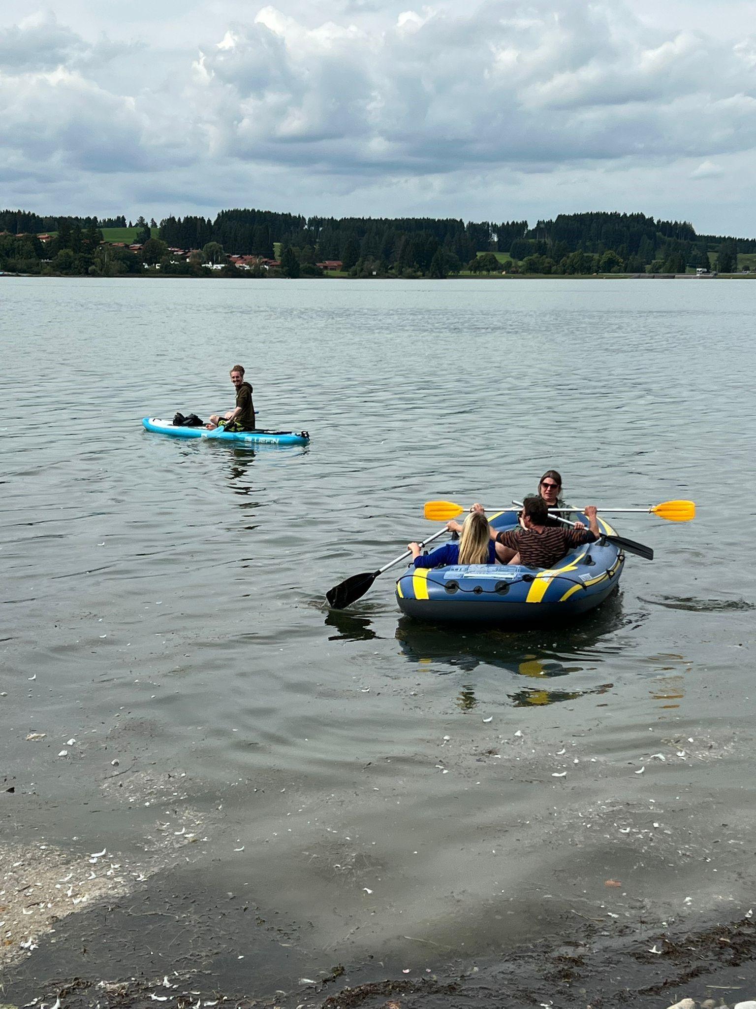 Mit gut gefüllten Mägen ging es dann ab ins Vergnügen: Schlauchbootfahren 🚣, Stand-Up-Paddeln 🏄, Spiele aller Art 🎲 – von entspannt bis actionreich war alles dabei. Und ja, auch nasse Füße gehörten zur Tagesordnung. Dafür gab’s jede Menge Lachen und vielleicht die ein oder andere neue Anekdote fürs Pausenraum-Repertoire. 😉