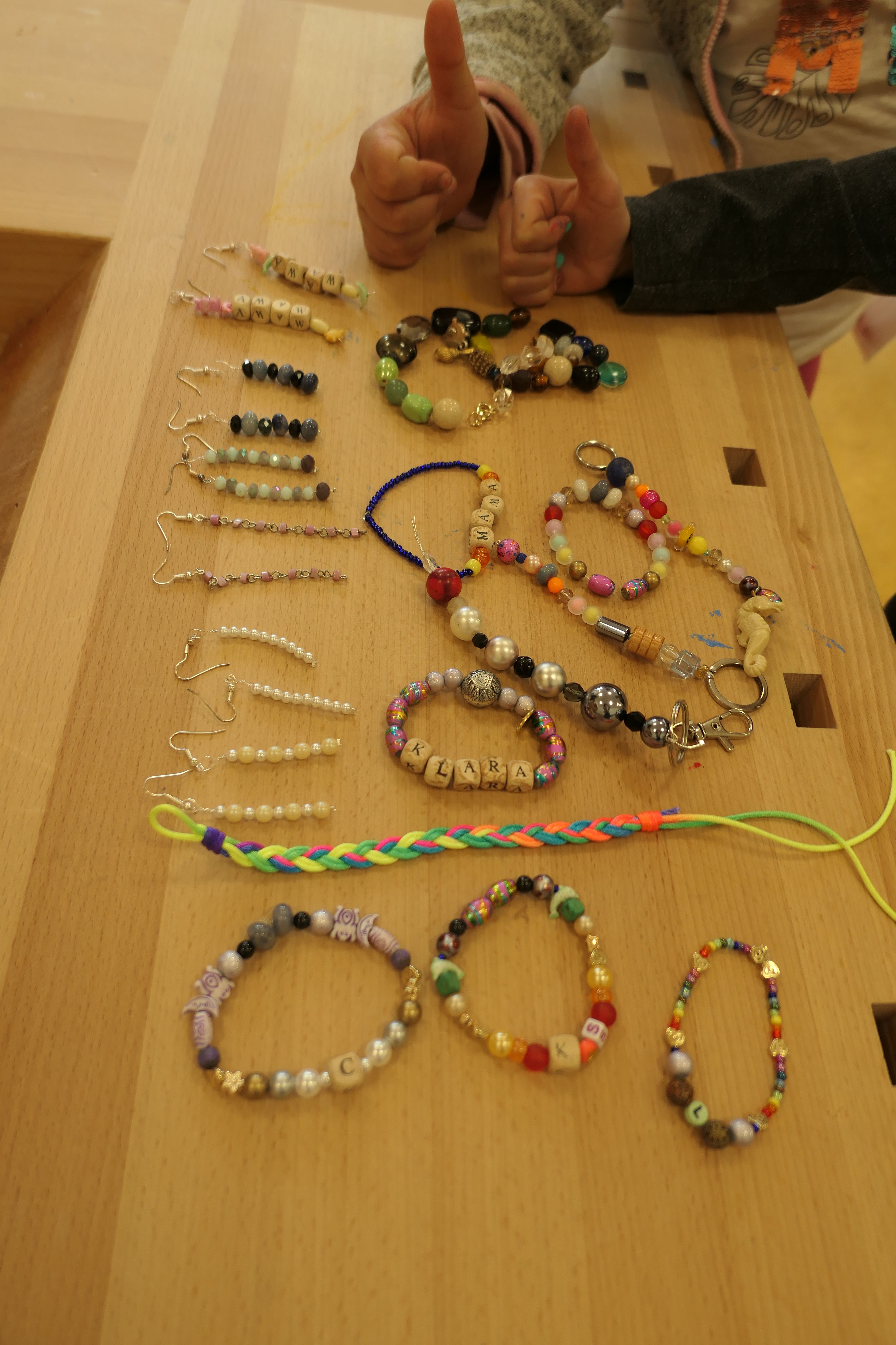 Unter der einfühlsamen Anleitung von Frau Kufner entstanden wahre Meisterwerke: von zarten Ohrringen bis hin zu funkelnden Ketten, von verspielten Armbändern bis zu individuell gestalteten Schlüsselanhängern. Jedes Stück erzählte seine eigene Geschichte, geprägt von der Kreativität und dem Geschick der jungen Teilnehmerinnen und Teilnehmer.