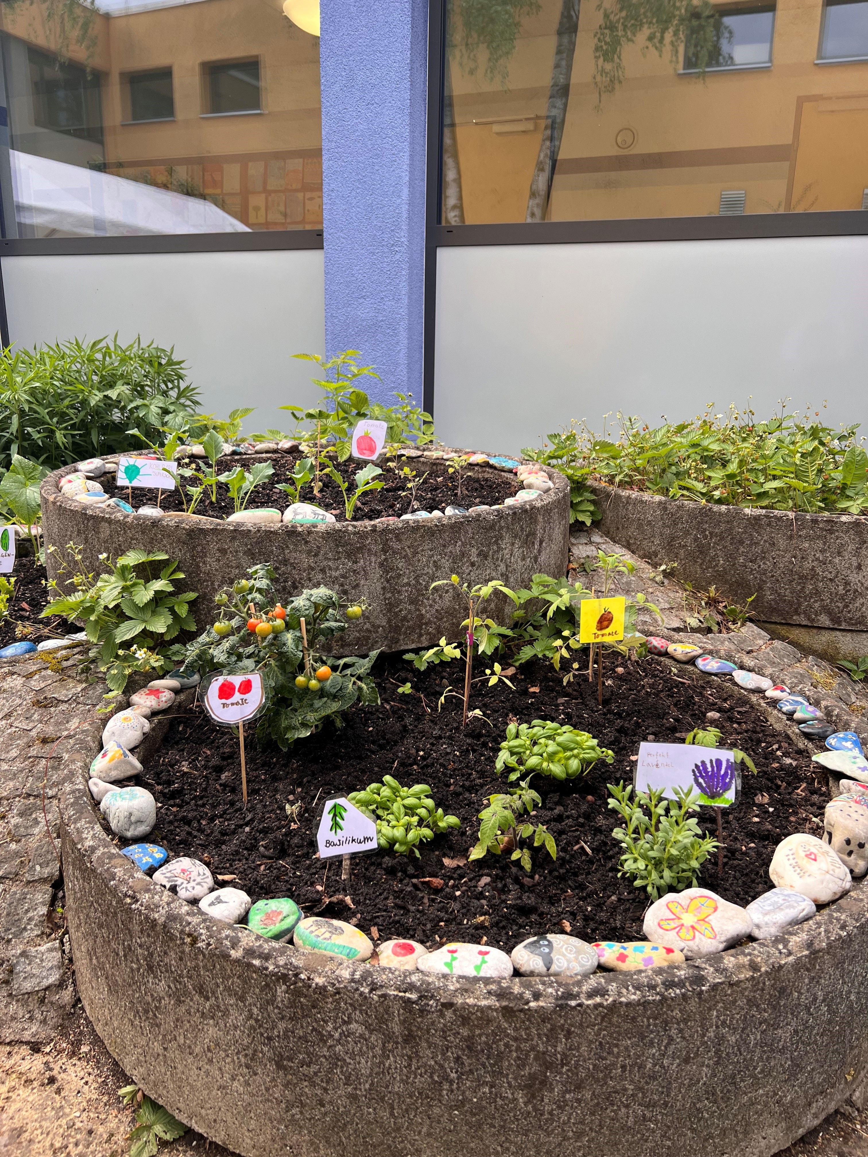 Die Kinder pflanzen, gießen, ernten und entdecken, wie spannend das Gärtnern sein kann. Ob bunte Blumen, knackiges Gemüse oder duftende Kräuter – in unserem kleinen Garten lernen die Kinder spielerisch, woher unsere Lebensmittel kommen und wie man verantwortungsvoll mit der Natur umgeht.