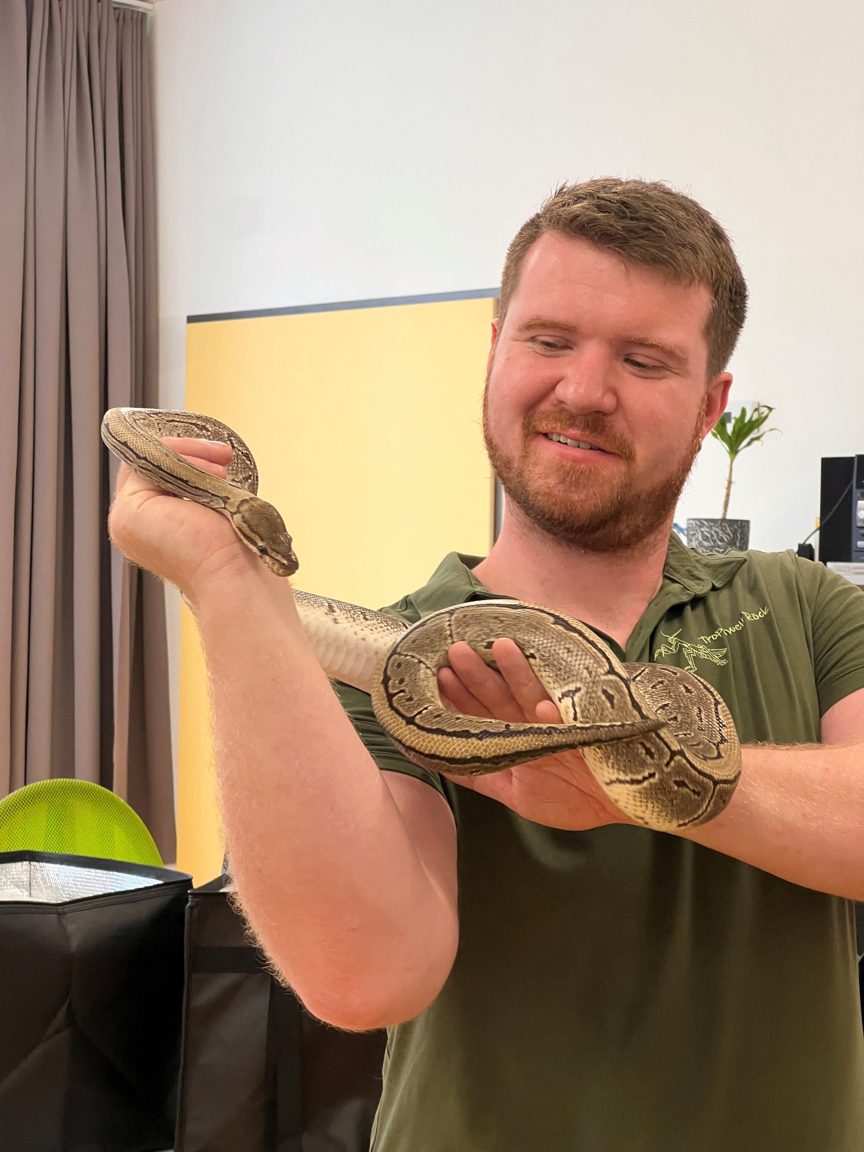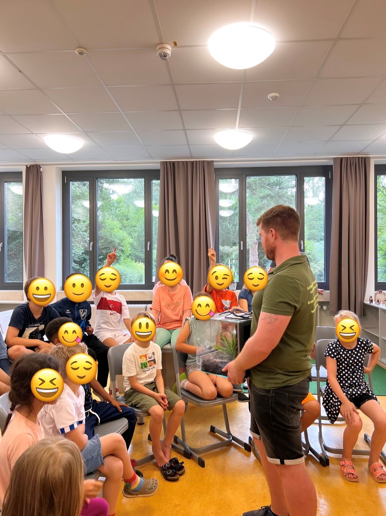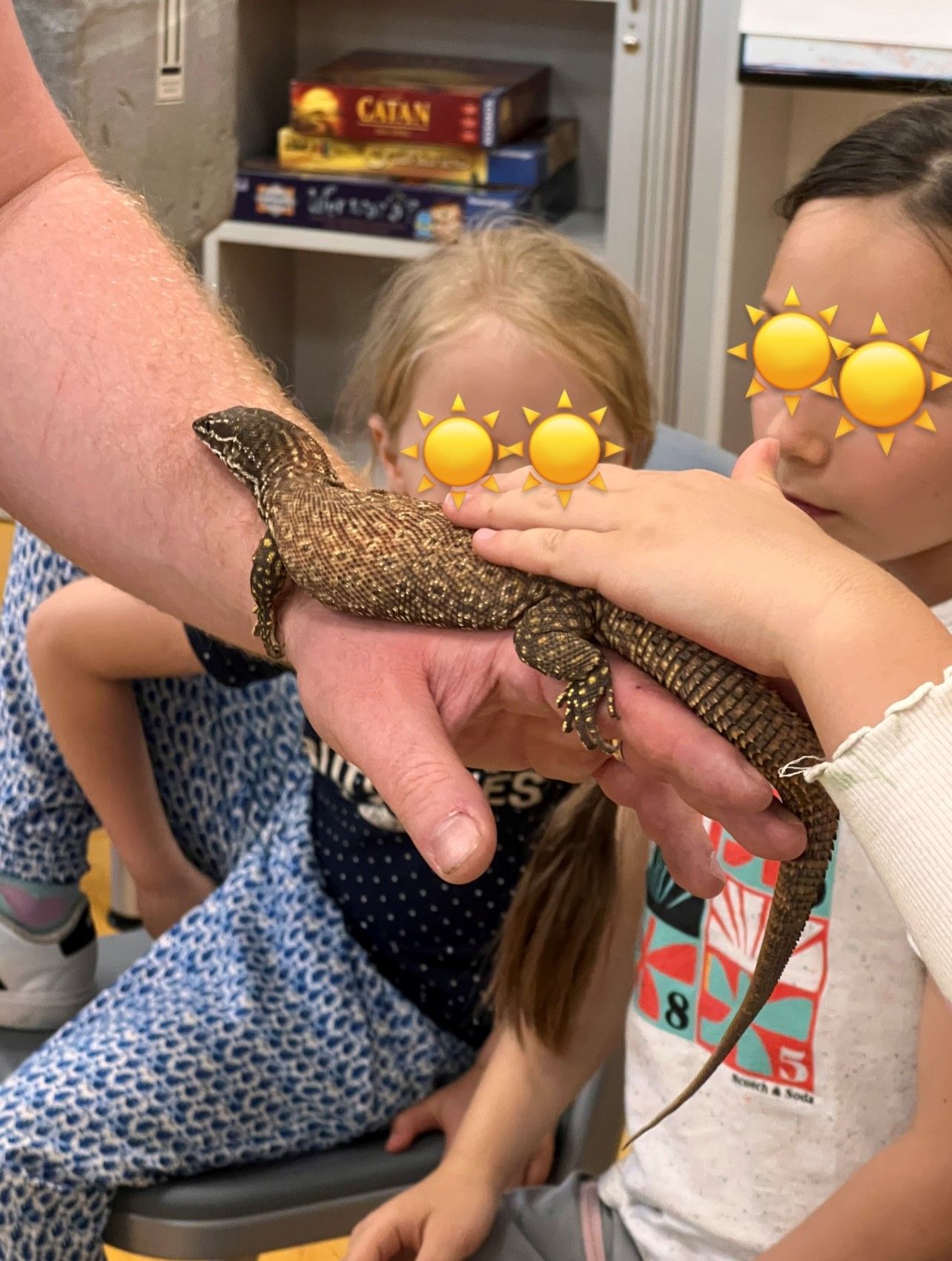 Das Besondere: Die Kinder durften die Schlange und den Waran sogar anfassen! Ganz vorsichtig und unter Anleitung konnten sie die Tiere aus nächster Nähe erleben – ein aufregender Moment, den viele so schnell nicht vergessen werden. Nebenbei gab es viele interessante Infos über die Lebensweise und Besonderheiten der Tiere.