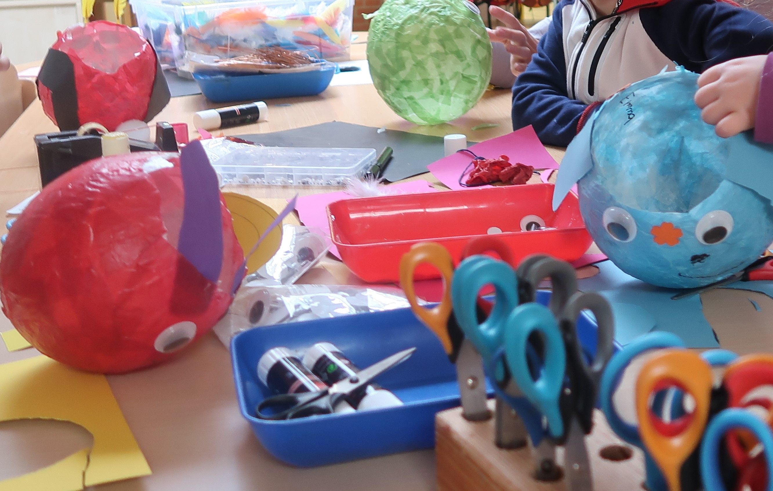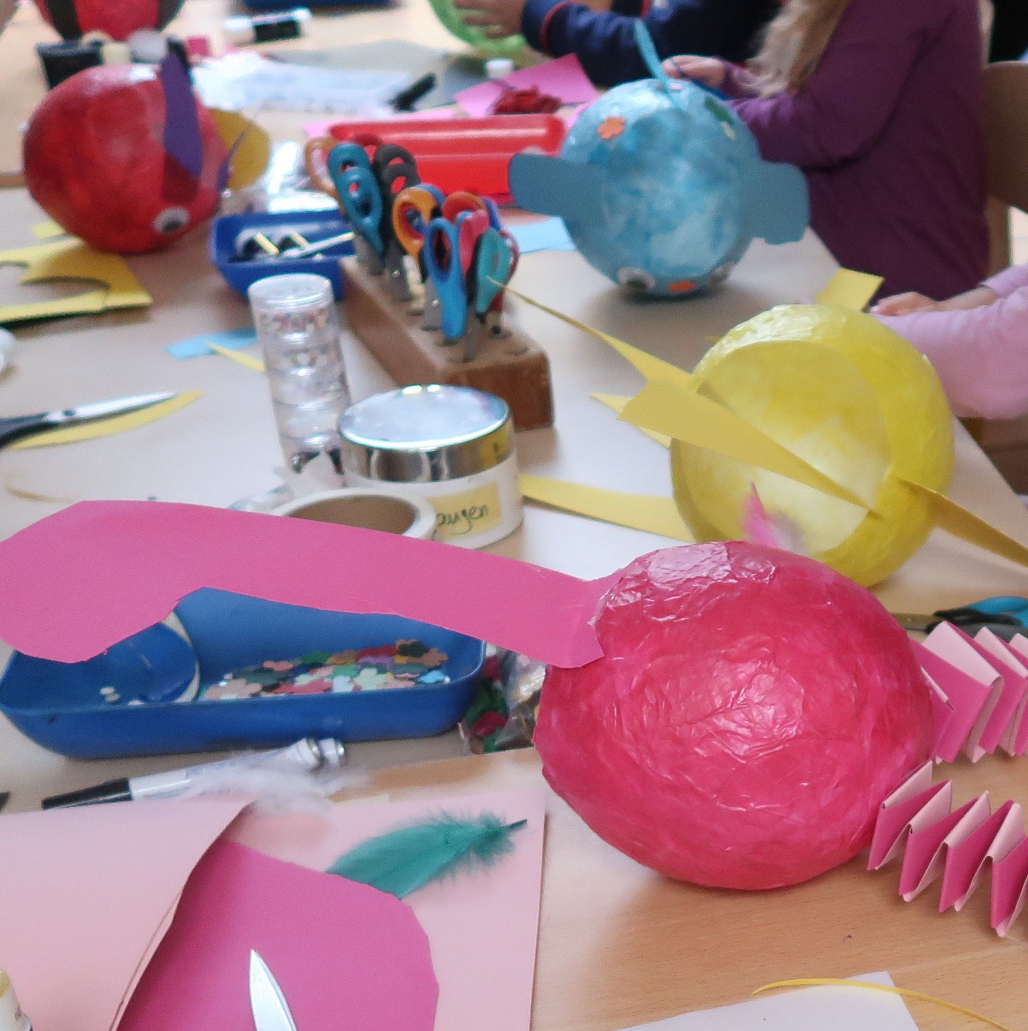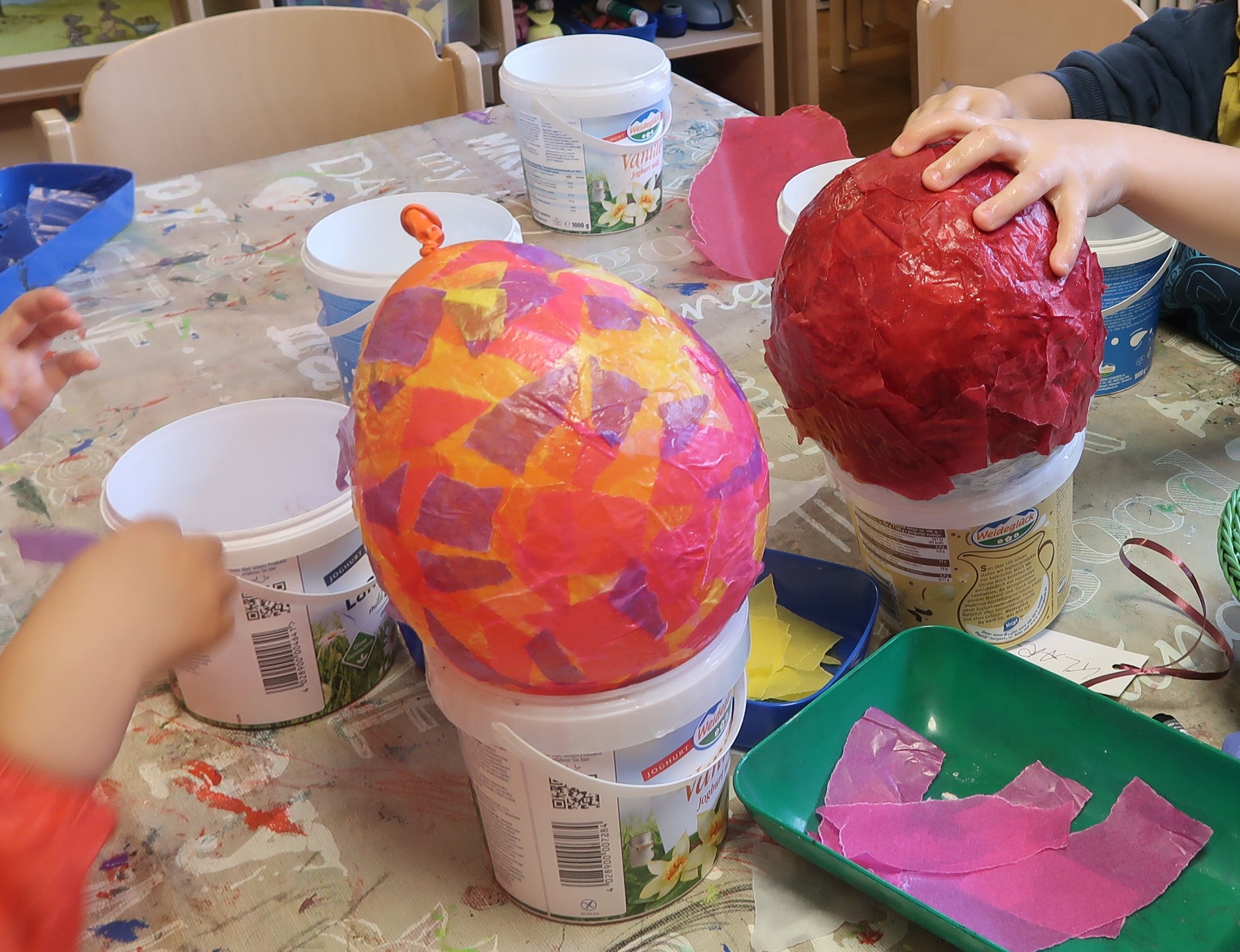 In Vorbereitung auf unser Laternenfest basteln die Kinder eifrig an ihren Laternen, ob sie wohl fertig werden?