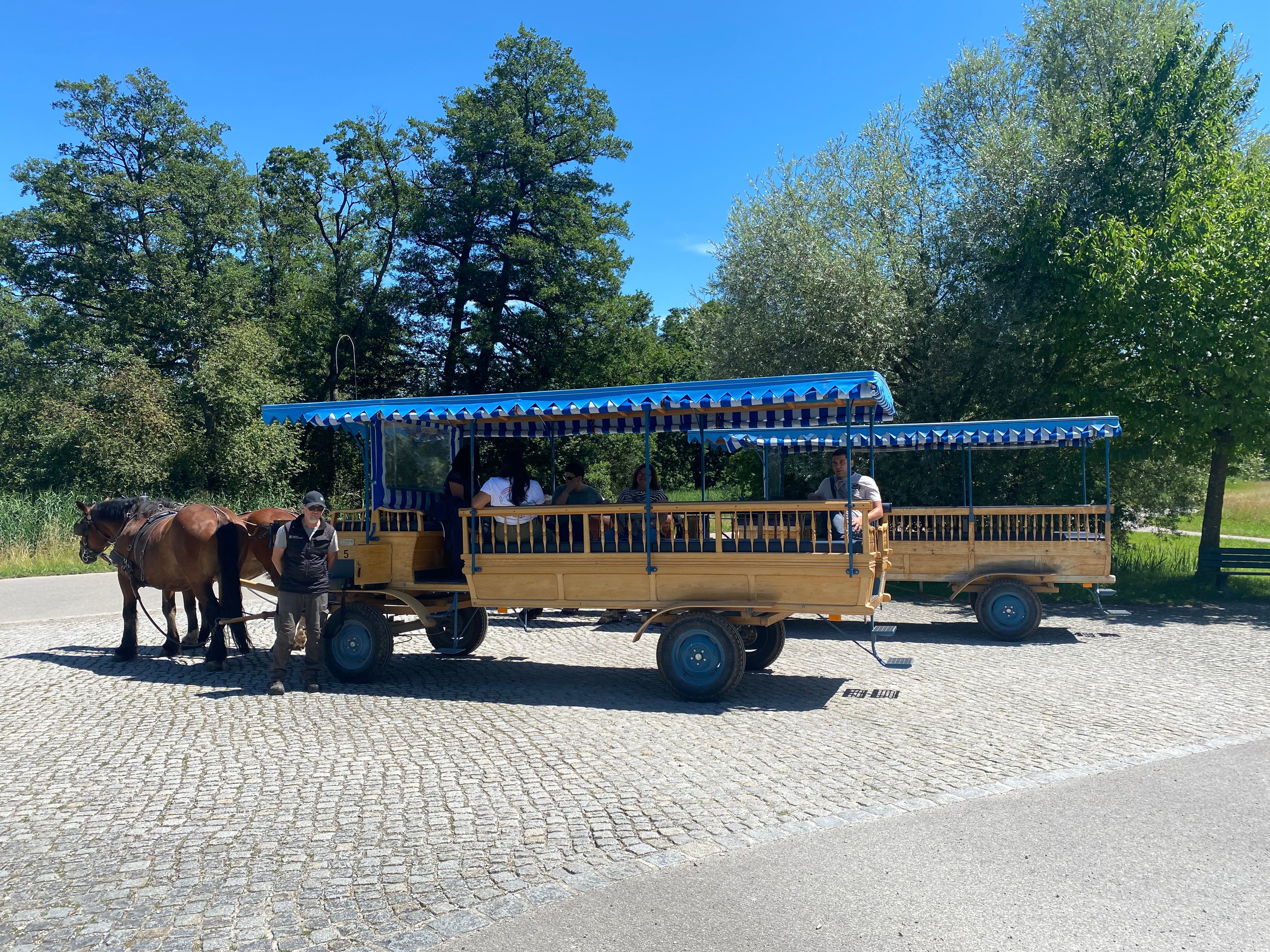 Kurz vor Beginn des Wochenendes hatten wir bei perfektem Wetter unseren Betriebsausflug zum Chiemsee. Morgens um 9h ging es gemeinsam los vom Münchner Hauptbahnhof nach Prien. Dort angekommen legten einige die Strecke zum Fähranleger mit der Bimmelbahn zurück und die Anderen genossen den 20-minütigen Fußweg. Die Schifffahrt zur Herreninsel war angenehm und die Seenlandschaft wirklich beeindruckend. Auf der Herreninsel angekommen, haben wir zunächst gemeinsam mittaggegessen, um im Anschluss gestärkt mit der Pferdekutsche weiter zum Schloss zufahren. Dort besichtigten wir das prunkvolle Schloss von König Ludwig II im Rahmen einer Führung. Uns hat es sehr gut gefallen und wir können es nur weiterempfehlen.