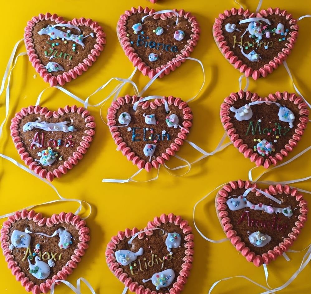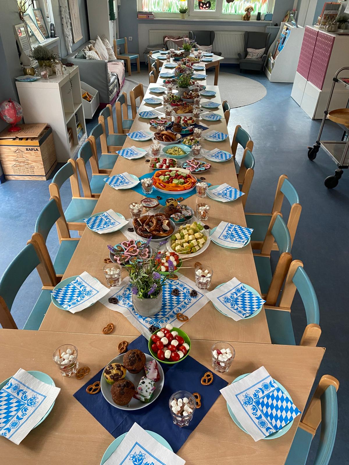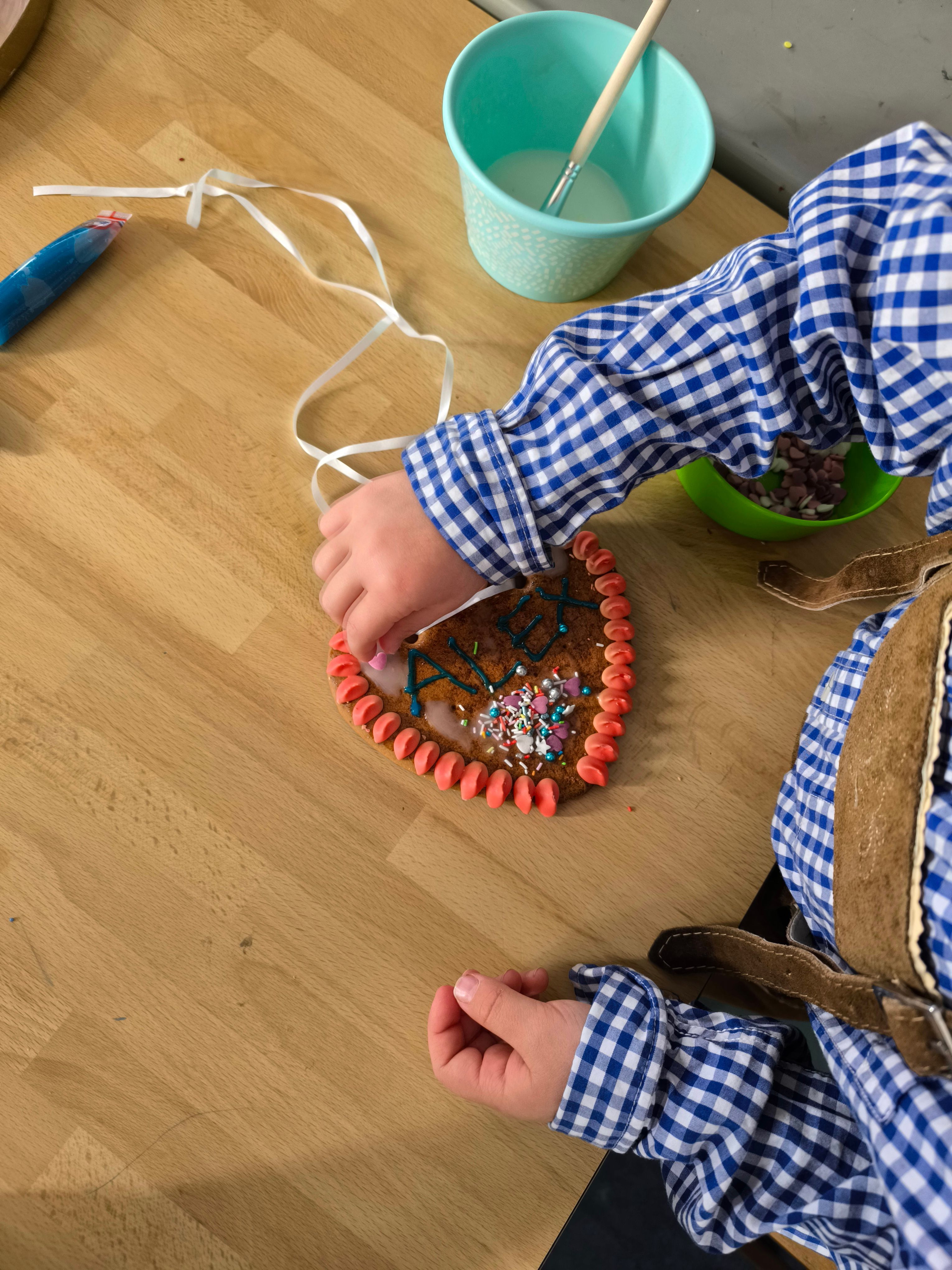 Wie in jedem Jahr haben wir auch in diesem Jahr unser Kinder-Oktoberfest in der Krippe mit den Kleinsten und im Kindergarten mit den Kindern gefeiert. Es gab ein mit Liebe gemachtes Buffet dank unserer engagierten Eltern und Leberkas-Semmeln zum Mittagessen. Die Erzieher*innen und Kinder kamen größtenteils in Tracht und haben gemeinsam zu Musik getanzt, am Buffet geschlemmt und selbst Lebkuchenherzen verziert. Alles in allem war unser Kinder-Oktoberfest-2024 ein gelungener Tag mit viel Spaß und Kinderlachen.