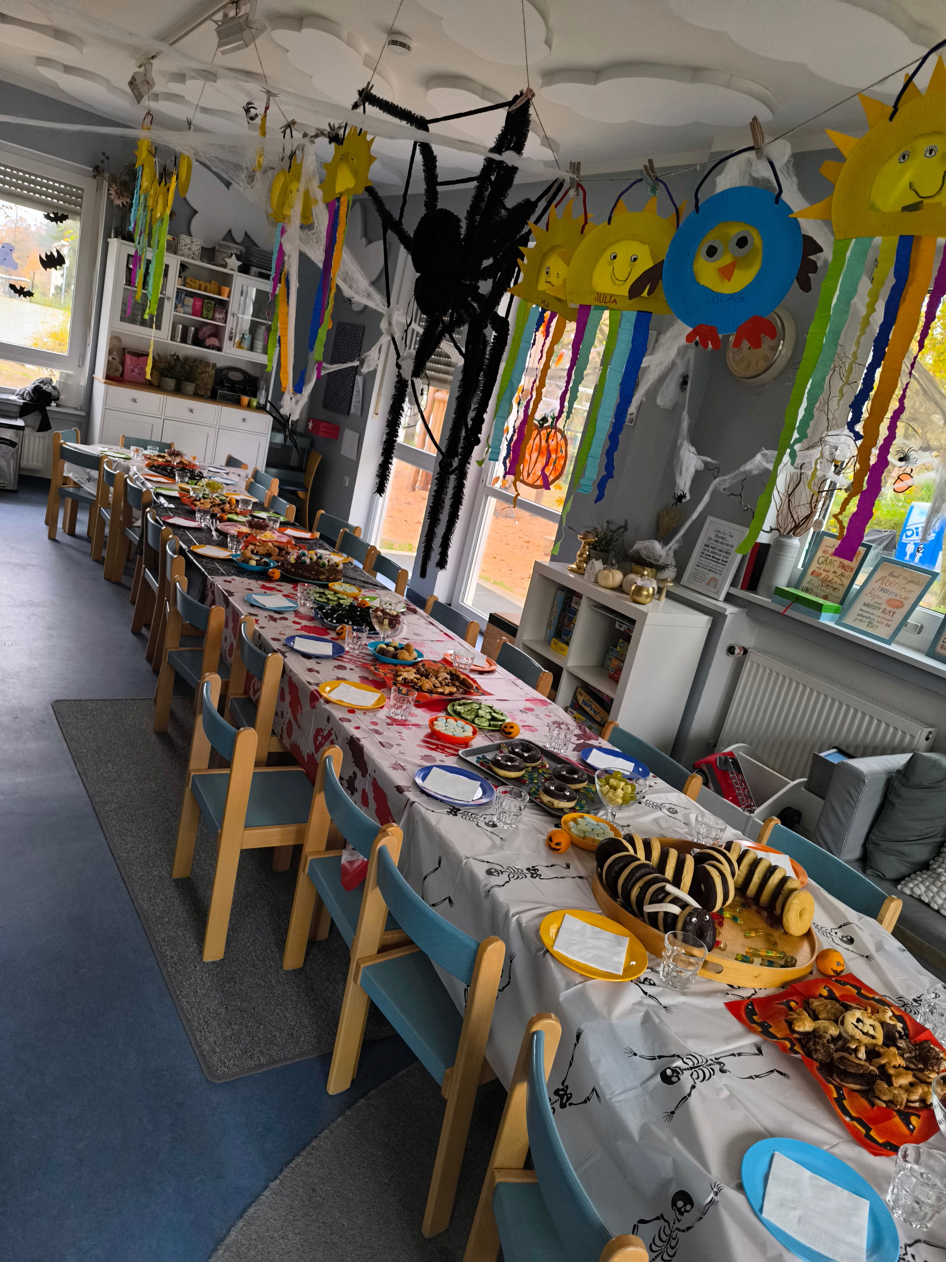 Dank der Bemühungen unserer Erzieher, so wie den lieben Eltern die gemeinsam für ein gruselig, leckeres Halloween-Buffet gesorgt haben, hatten wir wieder einmal ein schaurig-schönes Gruselfest. Es ist toll so ein engagiertes Team zu haben, das von Herzen für leuchtende Kinderaugen sorgt.