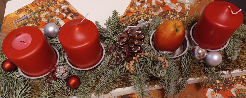 Dann ging Lotta ihre Öllampe zur Neige und sie borgte sich eine Kerze aus unserem Adventskranz aus. Damit das ganze nicht auffällt, hinterließ sie den Kindern einen Apfel.