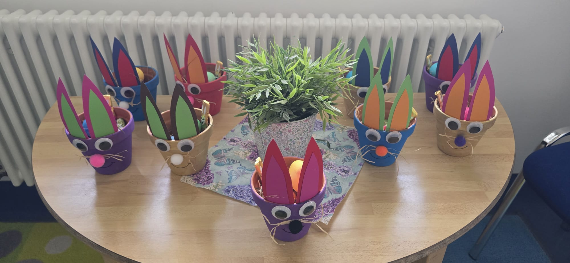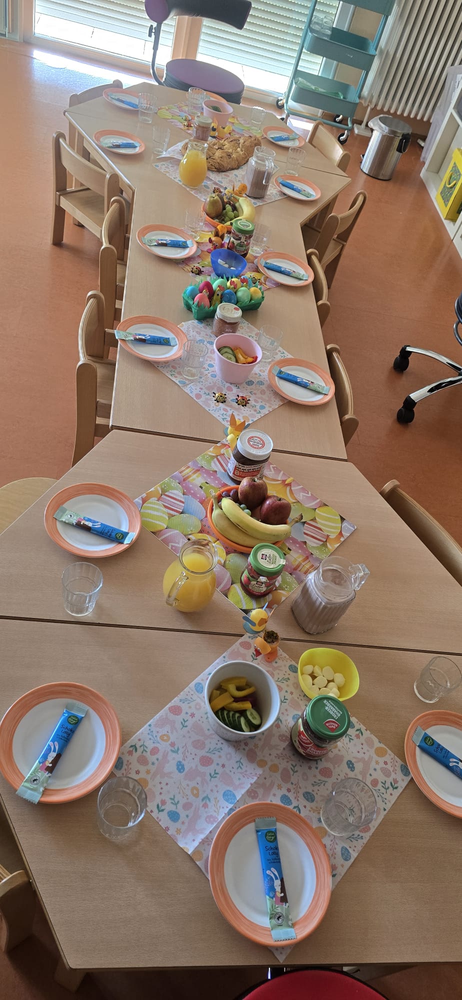 In unserer Kinderkrippe ist das Osterbasteln in vollem Gange. Liebevoll gestalten die Erzieher die Krippe österlich gemeinsam mit den Krippenkindern. Auch morgens ist der Frühstückstisch thematisch auf Ostern abgestimmt.