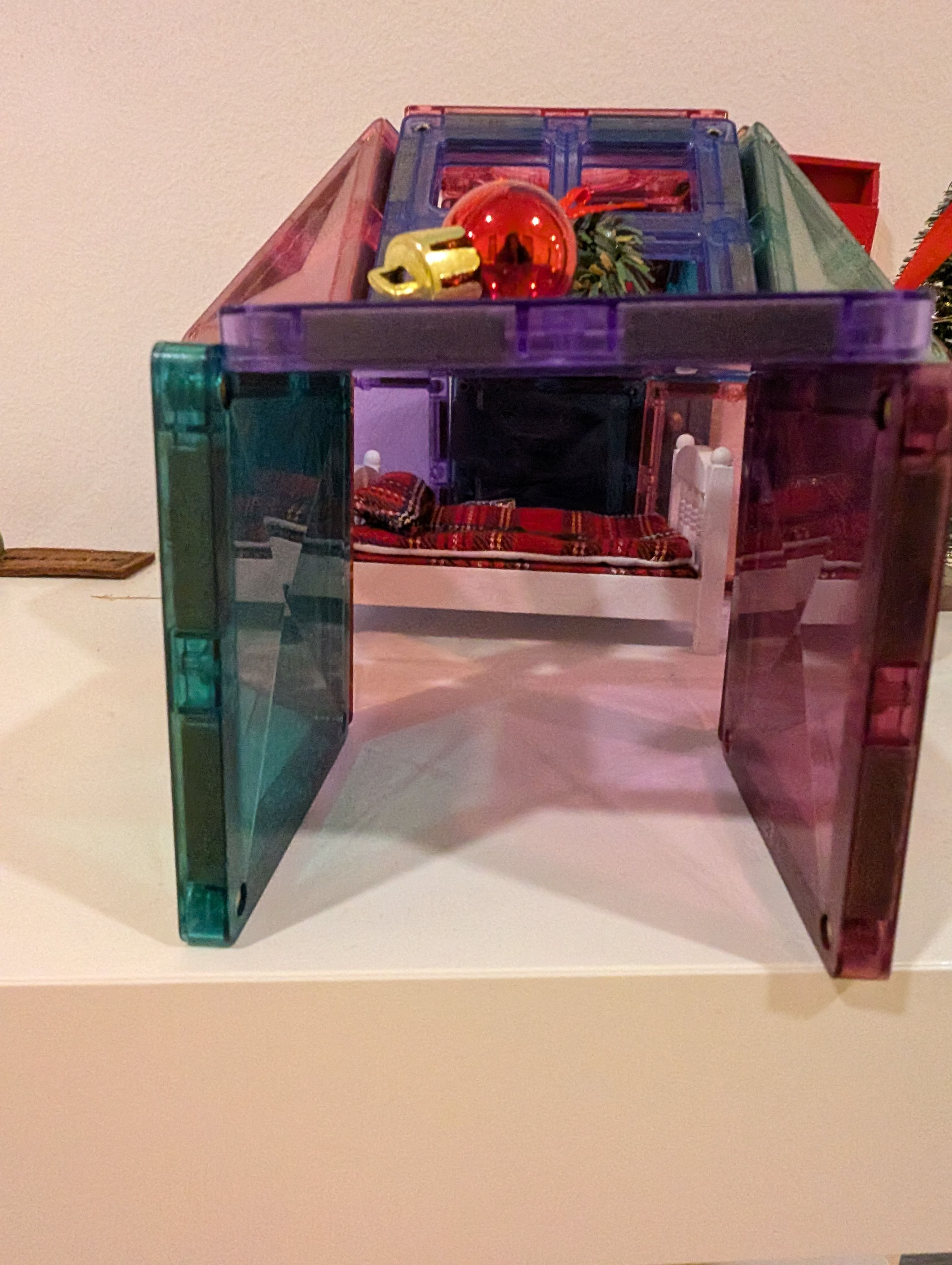 Sie durften Ihnen Weihnachtsbilder malen. Heute morgen haben wir sein Bettchen gesehen, umhüllt von einem selbstgebauten Iglu, aus unseren Magnetbausteinen, ganz schön frech dieser Kamau.