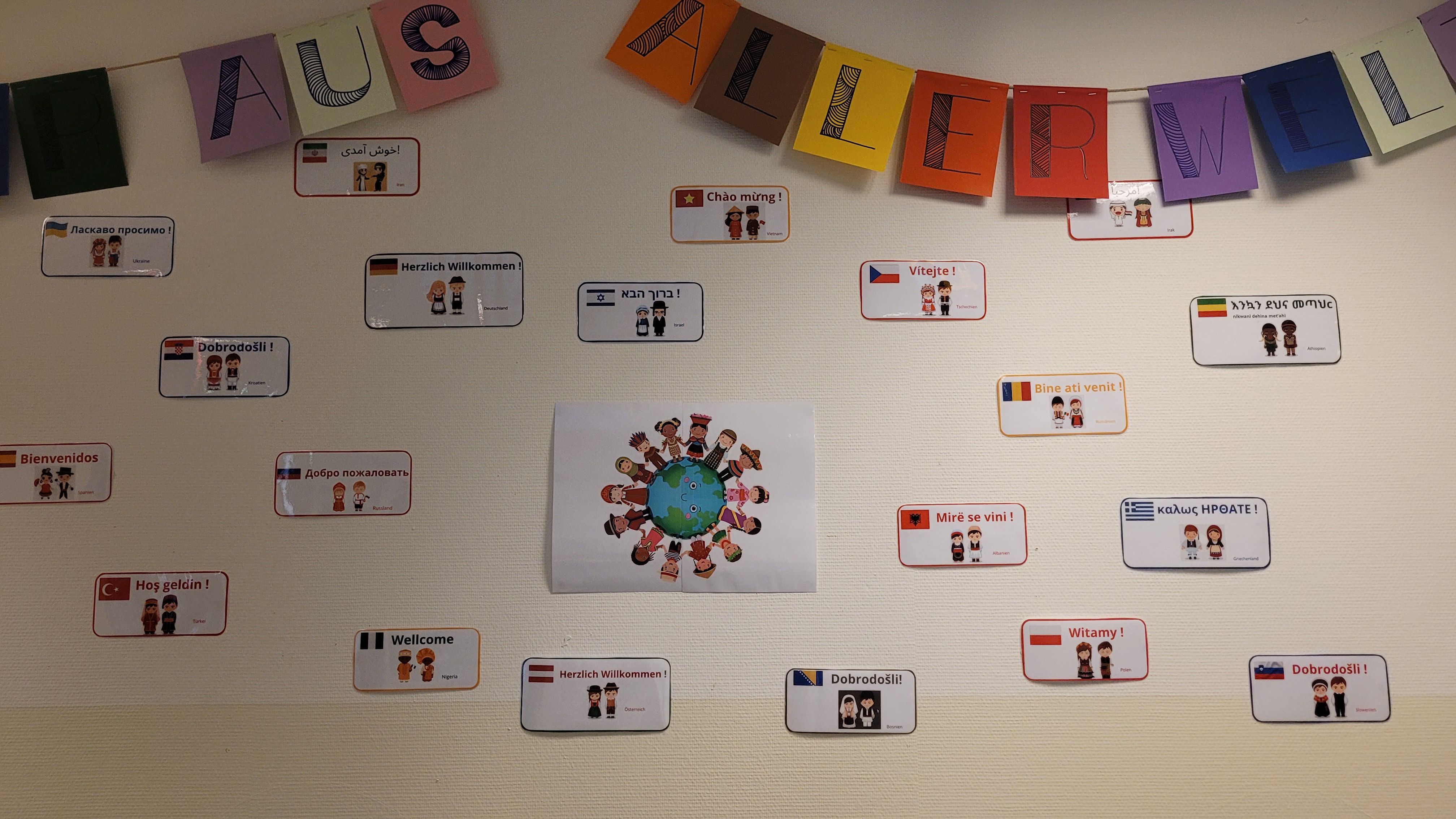 Zum Start unseres Jahresprojekts “Wir Kinder aus aller Welt” gestalteten wir eine Willkommens-Wand mit allen Sprachen der Kinder & Familien unseres Hauses!