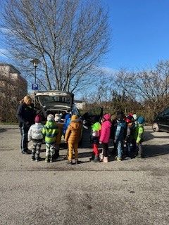 Danach durften alle Kinder des Kinderhauses das Polizeiauto ansehen und sogar probe-sitzen! Natürlich wurde auch die Sirene und das Blaulicht eingeschaltet.