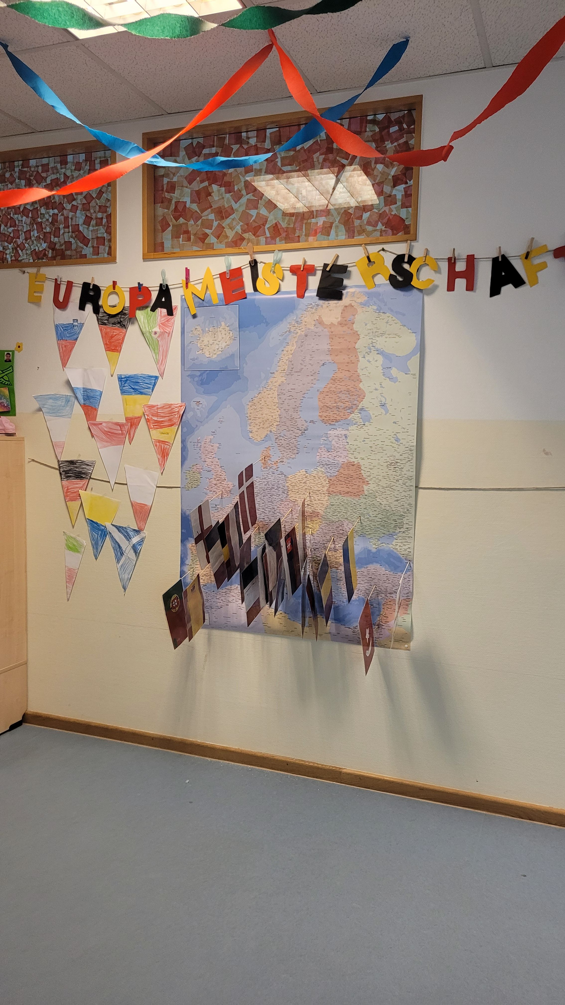 Die Kinder dürfen unter Anderem auf die verschiedenen Spiele tippen, Flaggen der Teilnehmerländer basteln, sich Europa-Karten ansehen und Länder zuordnen!