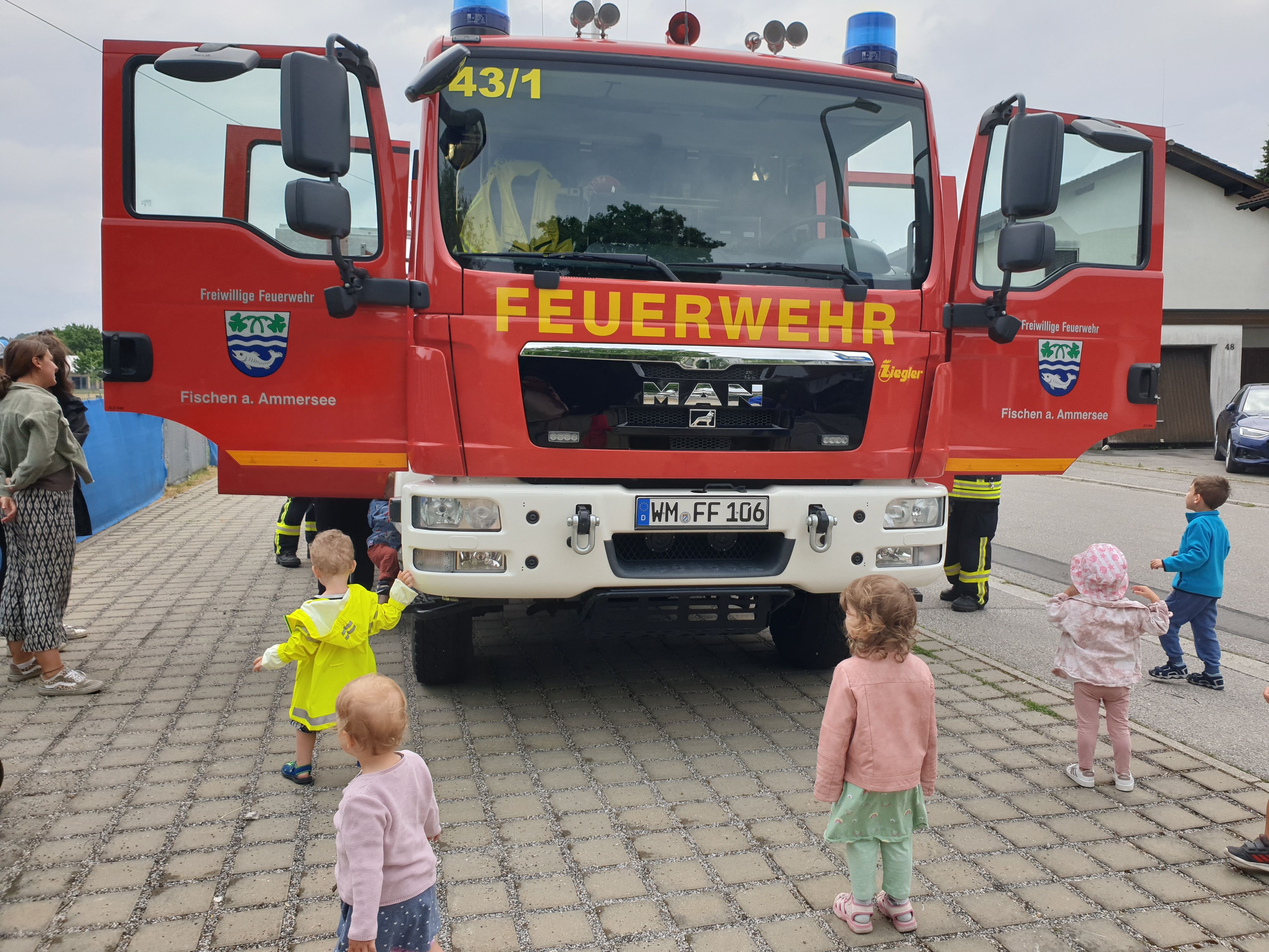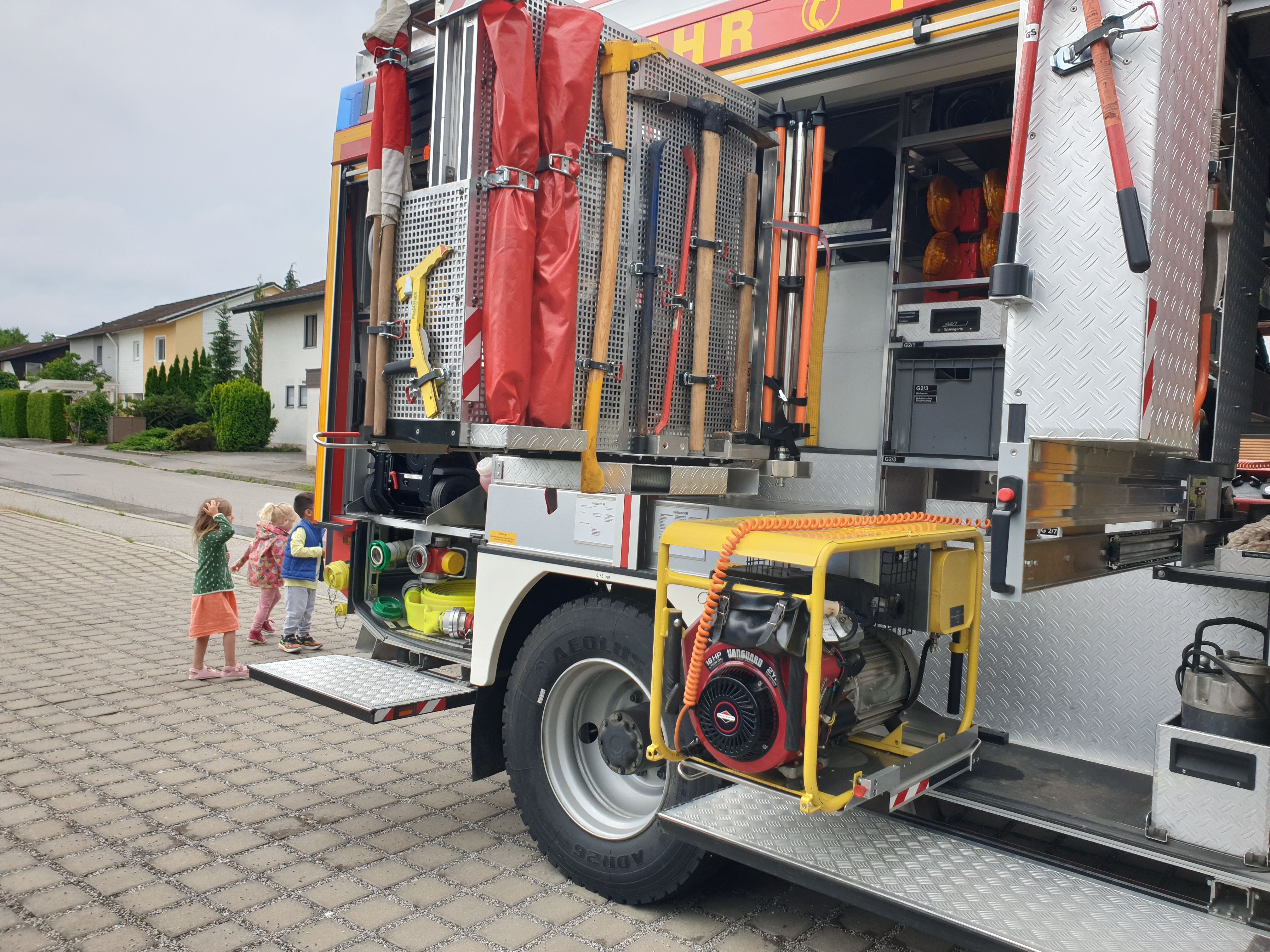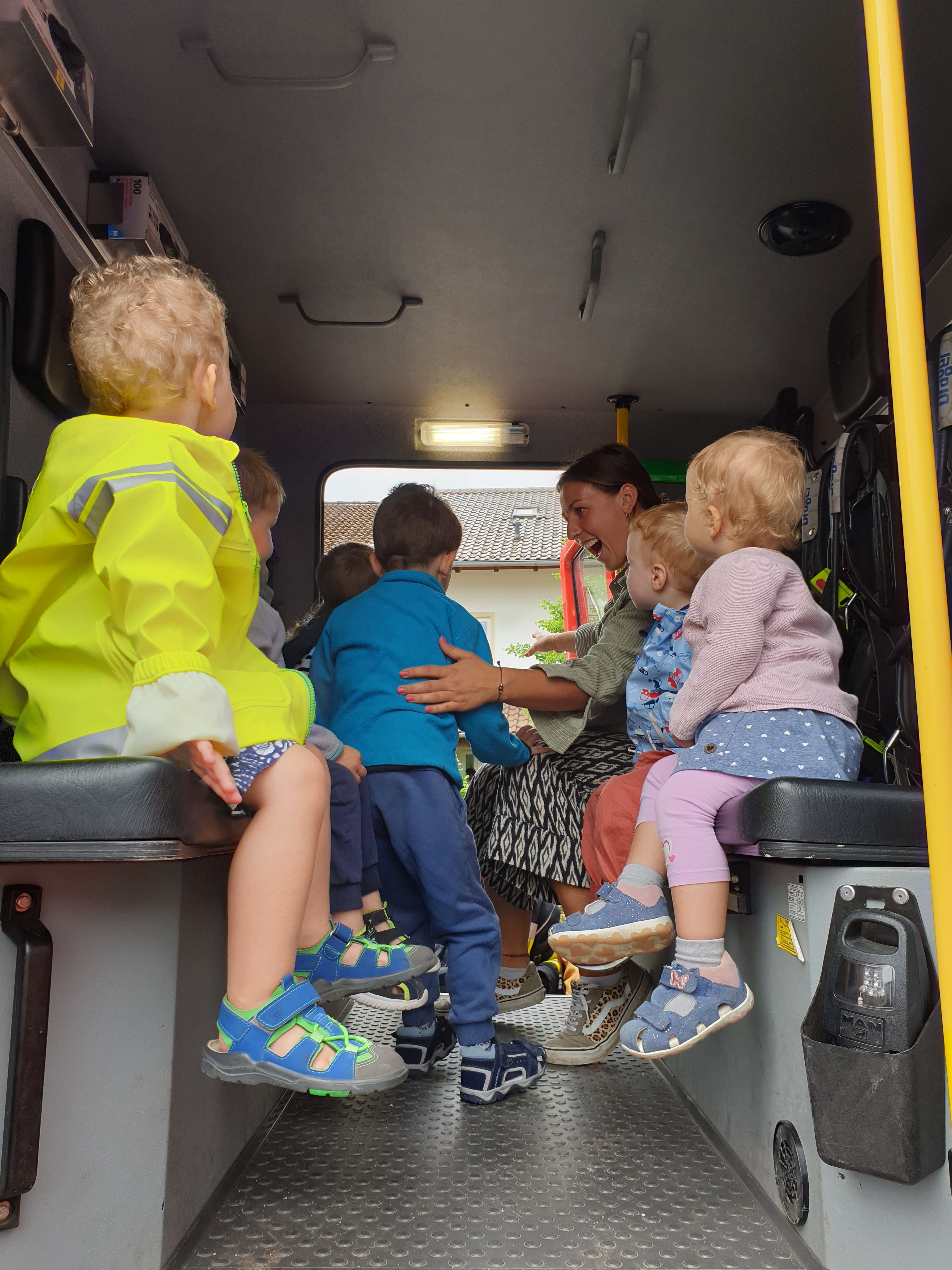 Letzten Freitagvormittag besuchte uns ein Feuerwehr-Einsatzfahrzeug im Takatukaland. Der Vater eines Kindes aus der blauen Gruppe kam mit einem Kollegen bei uns vorbei. Alle hatten die Möglichkeit Fragen zu stellen und wir durften sogar im Feuerwehrauto sitzen! Wir bedanken uns von Herzen für dieses schöne Erlebnis!