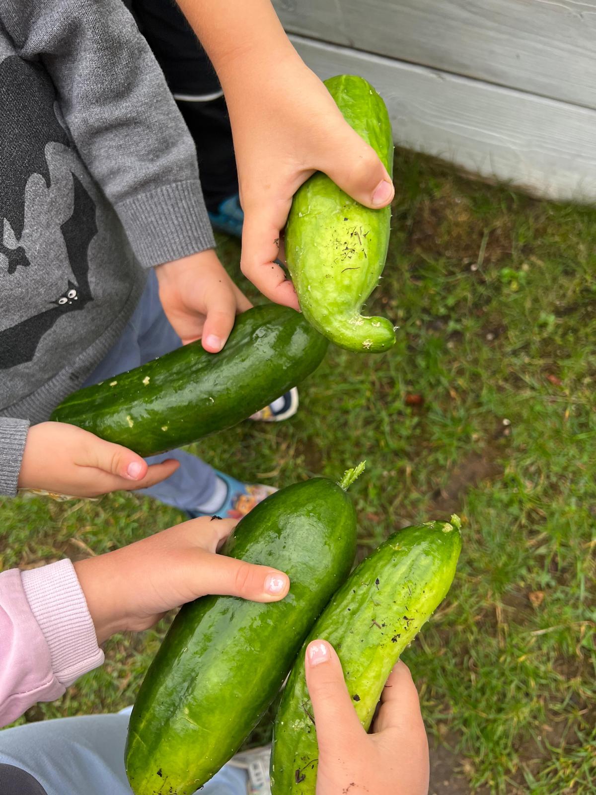 Kurz vor der Schließzeit konnten wir heute endlich die ersten Gurken, aus einem unserer Hochbeete, ernten und im Anschluss dann verspeisen. Vereinzelt gab es bereits schon Erdbeeren, Minze oder auch die Blüte der Kapuzinerkresse. Der Kürbis und die Tomaten lassen aber noch etwas auf sich warten…