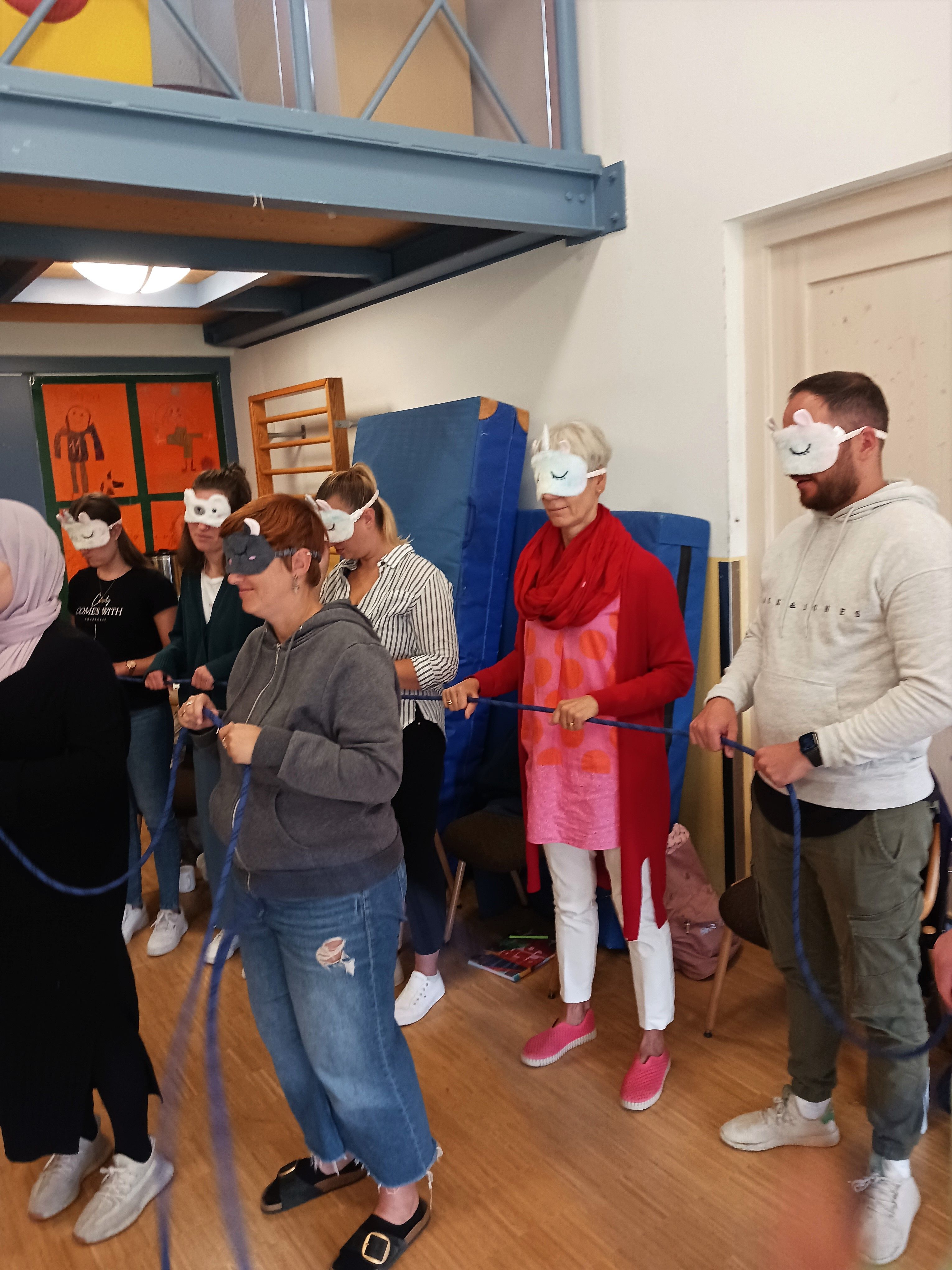 “Herzlich Willkommen zu unserem Team-Tag”, hieß es letzten Freitag für alle KollegInnen der “Villa Kunterbunt” und des “Takatukalandes”. Begonnen haben wir um 8.00 Uhr erst einmal mit einer Vorstellungsrunde für unsere neuen Team-Mitglieder. Im Anschluss haben wir uns zu fachlichen Themen, wie beispielsweise unserem teiloffenen Konzept und dessen Umsetzung ausgetauscht, haben etwas zum Teambuilding gemacht, allgemeine Infos besprochen und auch ein paar Bewegungsübungen für Alle durften nicht fehlen. Mittags gab es dann, mit Unterstützung von AWOaktiv ein gemeinsames Mittagessen, das von uns allen, in verschiedenen Gruppen, zubereitet wurde. Teamzeit innerhalb der einzelnen Gruppen, zur weiteren Planung und zum Austausch, war ebenfalls ein wichtiger Bestandteil des Tages, wofür dann von 14 - 15 Uhr noch Zeit war.