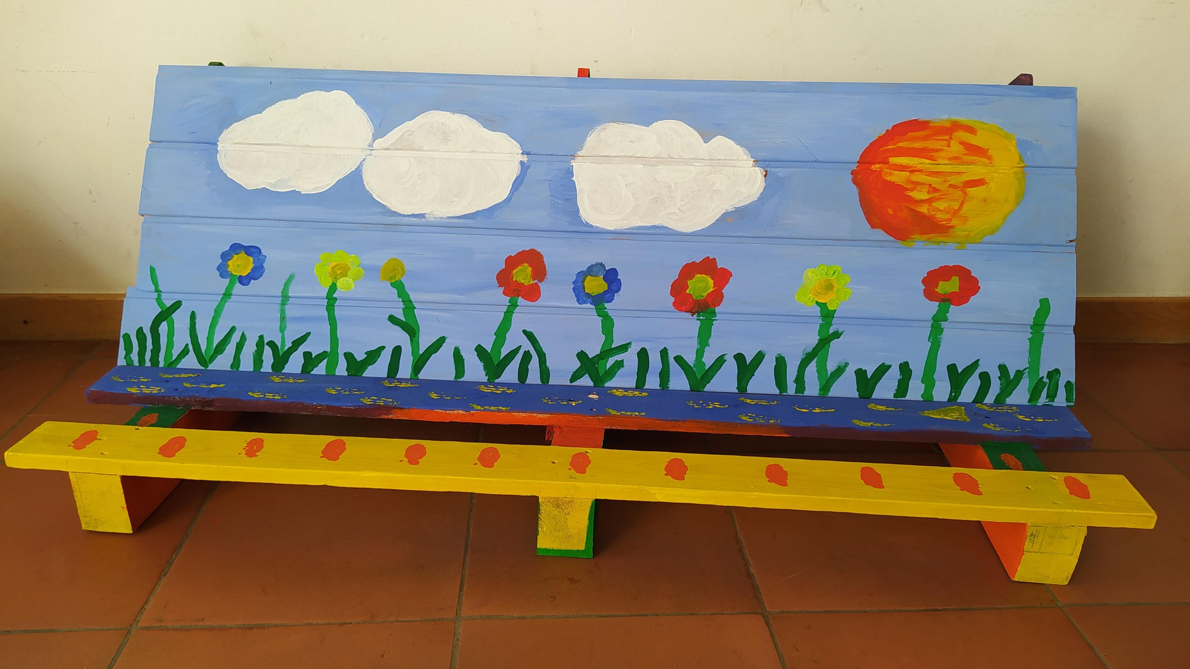 Anknüpfend an unsere großes Jahresthema “recycling&upcycling” haben wir hierfür zwei große Paletten verwendet. Die Bank ist daher sehr stabil und standfest. Die Farben sind wetterbeständig und bestens für Outdoormöbel geeignet.