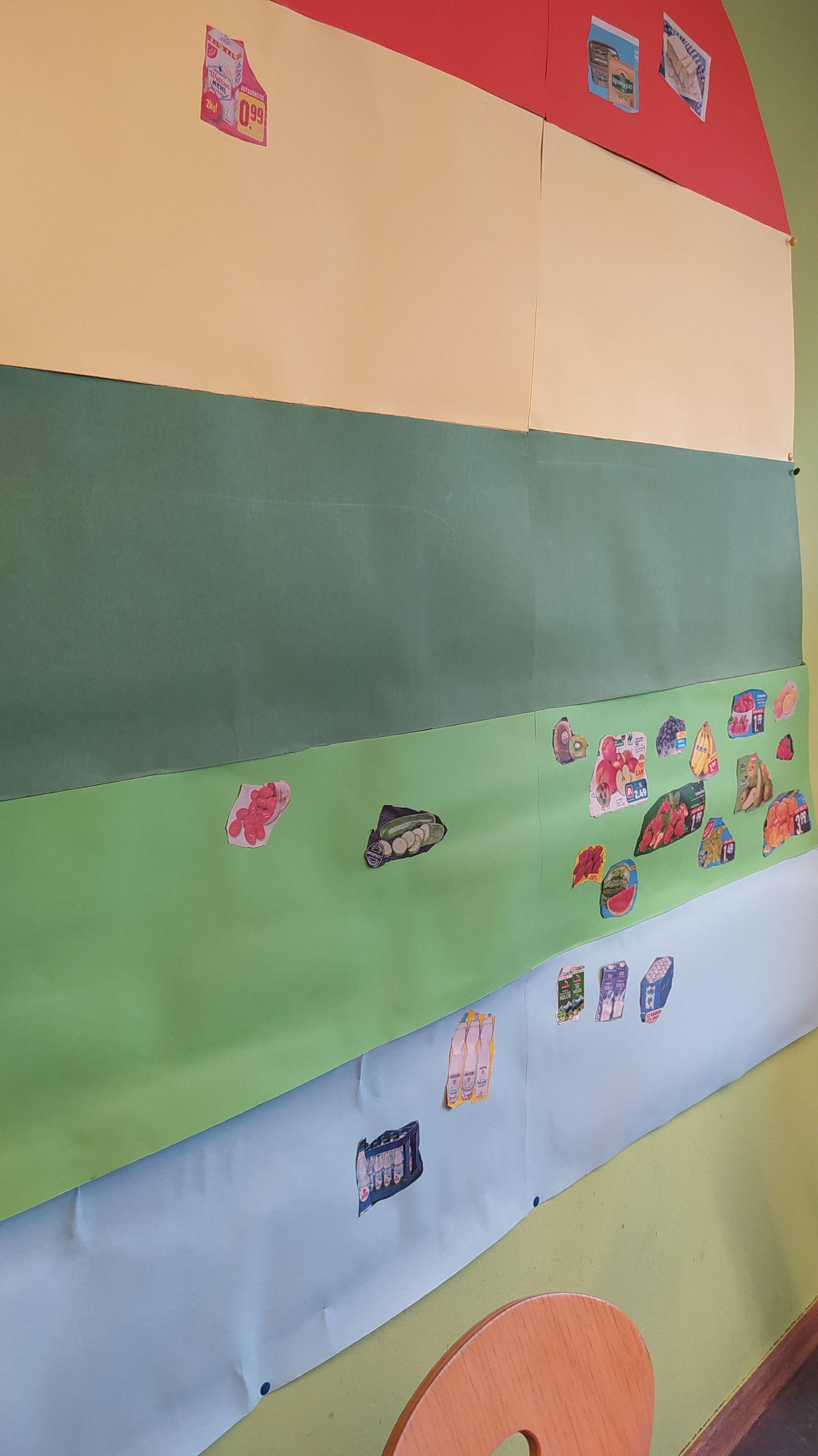 Bezogen auf unsere pädagogische Arbeit und speziell die Partizipation der Kinder im Alltag, haben wir begonnen, eine Ernährungspyramide im Essensraum zu gestalten und zu füllen.
