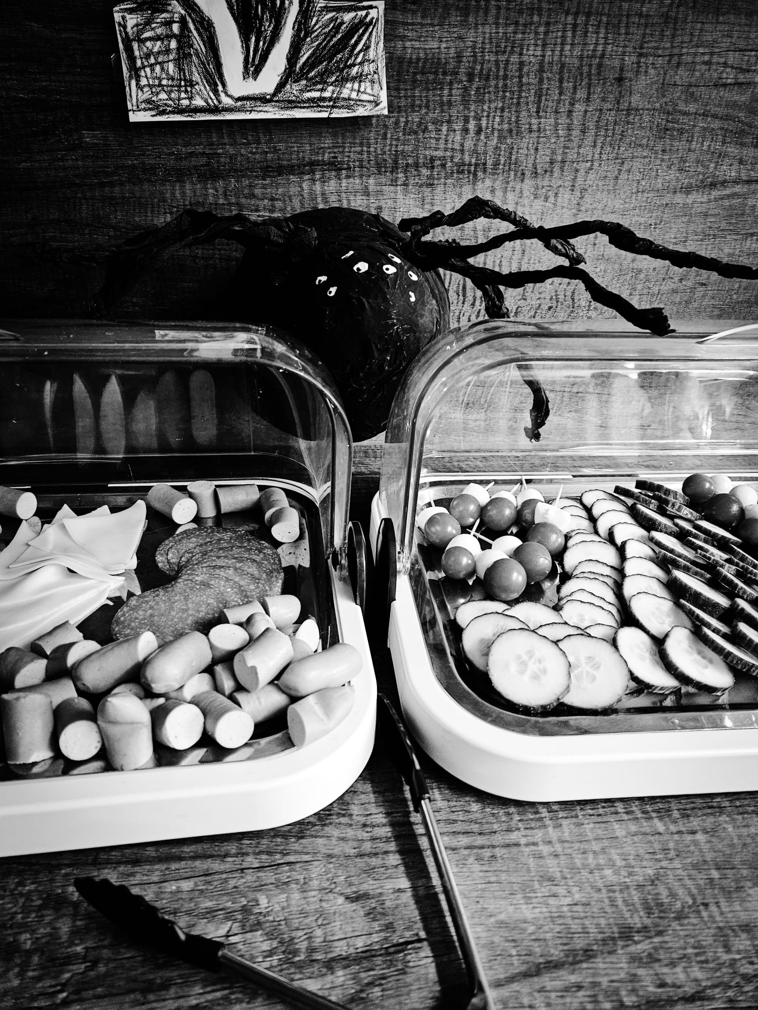 Hackefinger / Spinnenbuffet / Gespensterschminken / Frühstücksbuffet / Horror-Baumeister / “kleine” Spinne aus Pappmasche