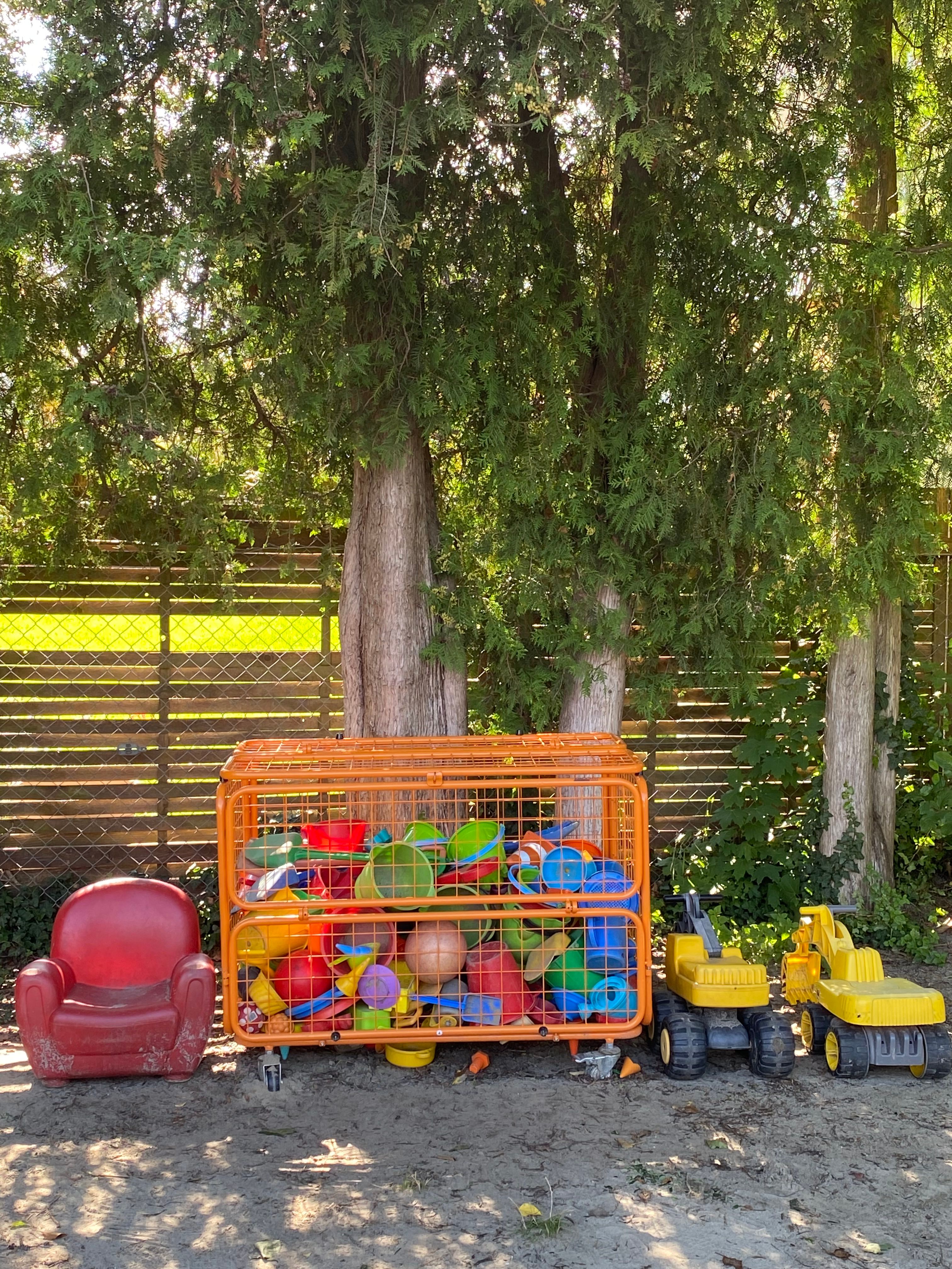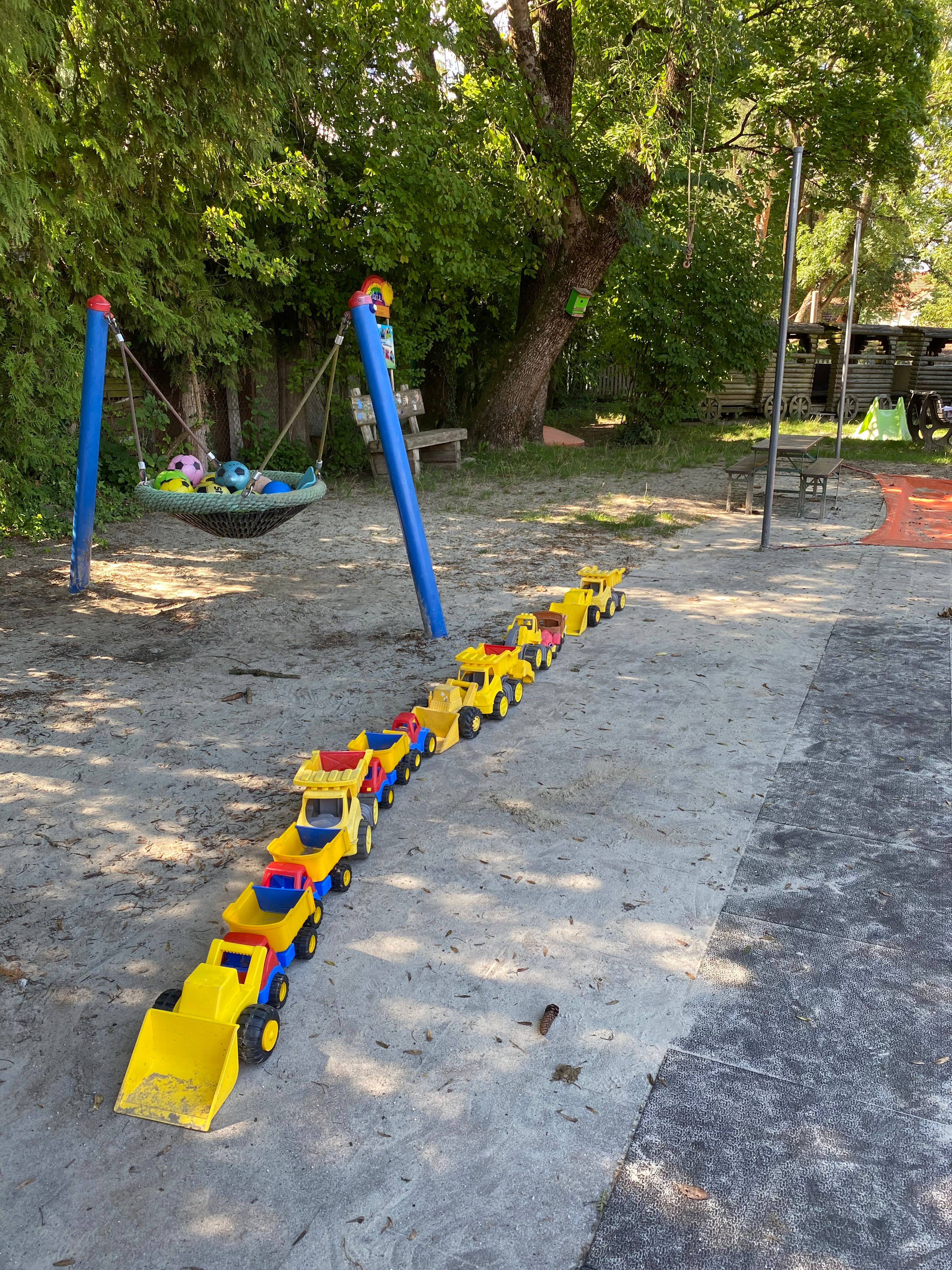 Ein großes Dankeschön an den Elternbeirat, der die tolle Gartenkiste zur Verfügung gestellt hat! Mit dieser praktischen Kiste macht das Aufräumen im Garten nicht nur viel mehr Freude, sondern es hilft uns auch, alles an seinem Platz zu haben. Die Kinder sind begeistert, ihre Werkzeuge und Materialien ordentlich zu verstauen und gleichzeitig zu lernen aufzuräumen. Weil die Fahrzeuge nicht mehr hinein passten, hatten die Kinder die Idee, diese einfach ordentlich hintereinander aufzustellen. Sieht toll aus ;)
