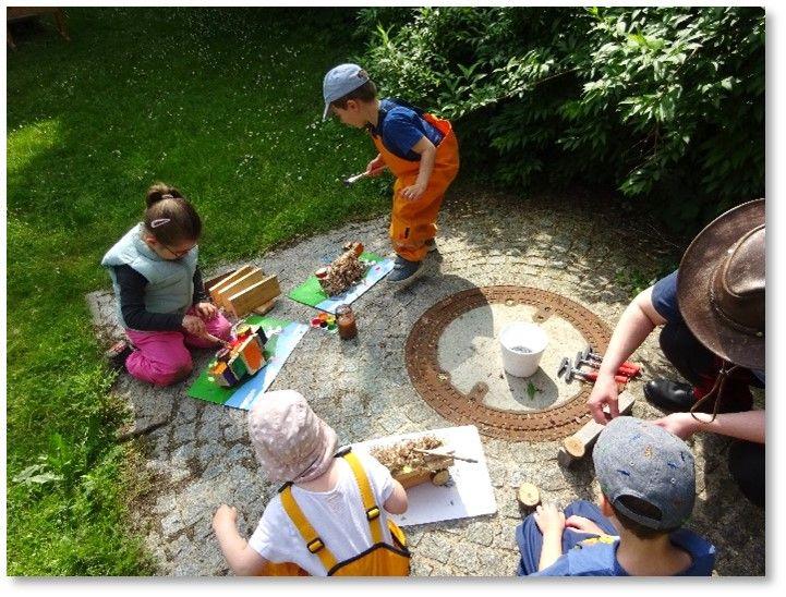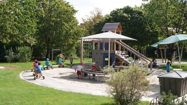 Unser Garten mit vielen Hecken, Sträuchern und Bäumen bietet jede Menge Möglichkeiten zum Spielen, Verstecken und Entdecken. In unserem Außenbereich, der von unseren Kindern mit entwickelt wurde, gibt es zwei große Sandbereiche, verschiedene Kletterstangen, ein großes Baumhaus, einen kleinen Fussballplatz, eine Wasserpumpe mit Wasserspielbereich, einen kleinen Berg mit Rutsche so wie viele weitere tolle Spielgeräte. Zudem können auf den Fahrwegen verschiedene Fahrzeuge genutzt werden.