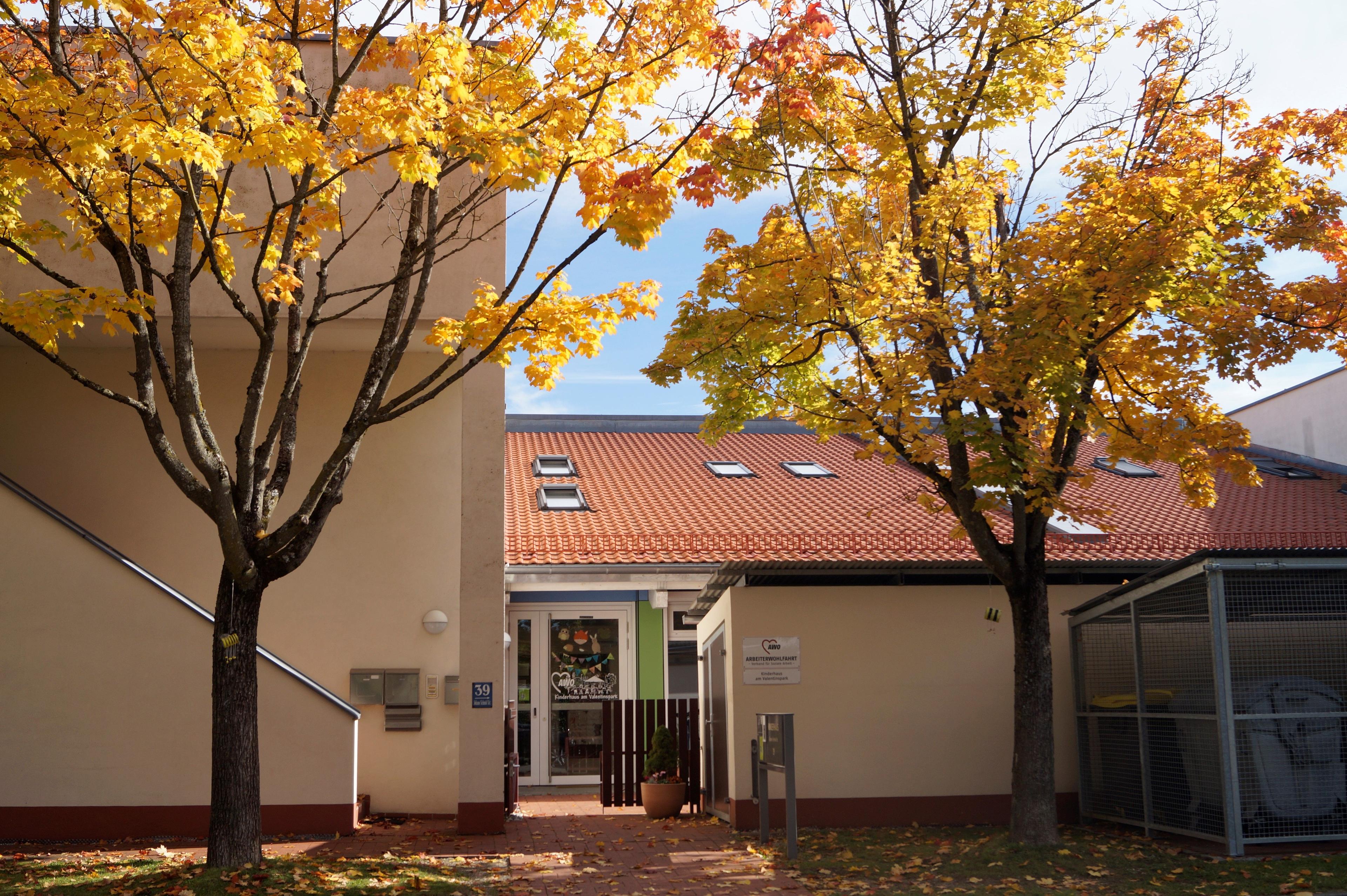 Das Kinderhaus ist ebenerdig gebaut. Alle 6 Gruppenräume haben jeweils eine Galerie und einen Zugang zu dem weitläufigen Außengelände.