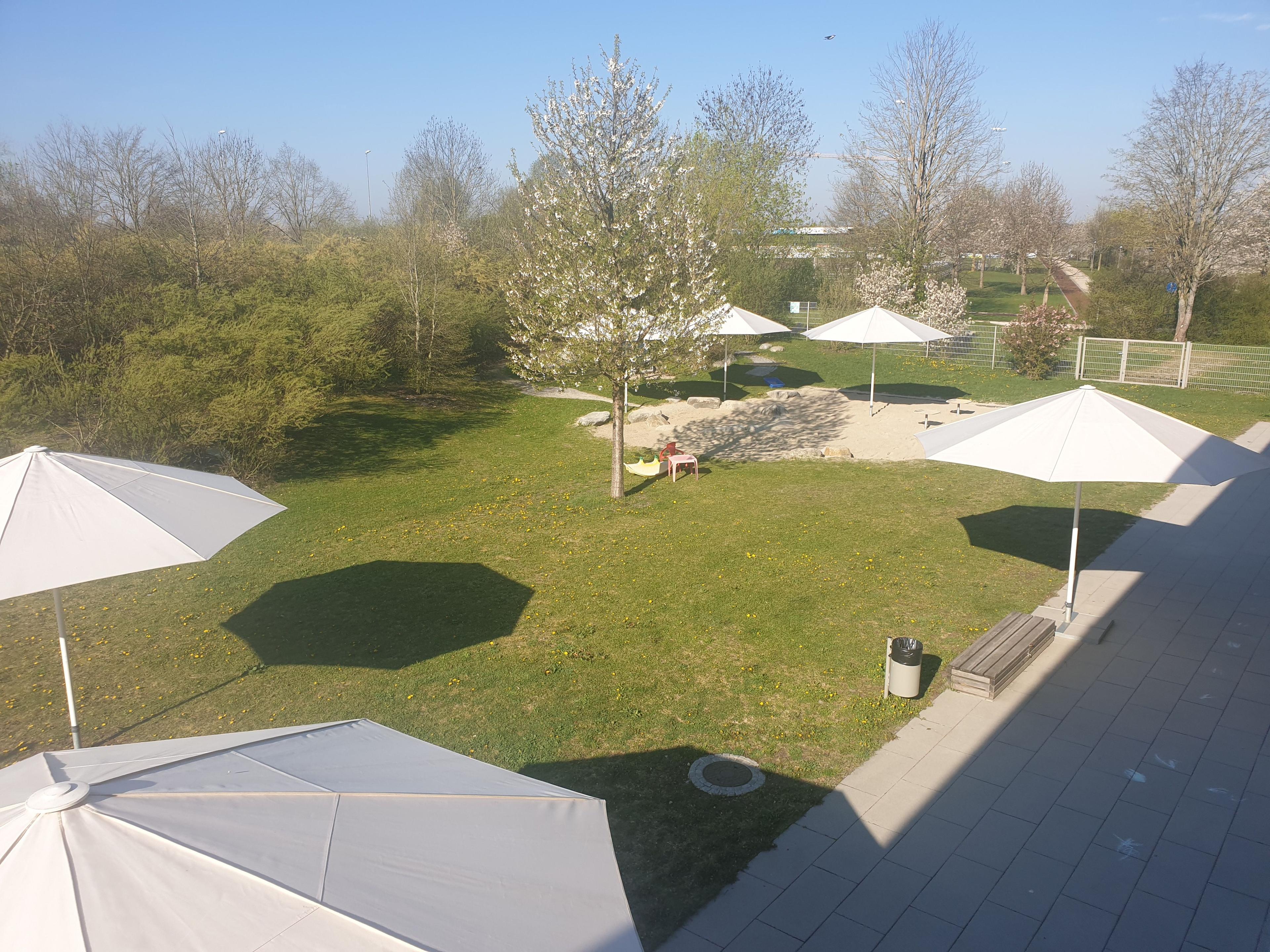 Unsere rund 1430 qm² Gartenanlage bietet zahlreiche und vielfältige Spiel- und Entdeckungsmöglichkeiten.