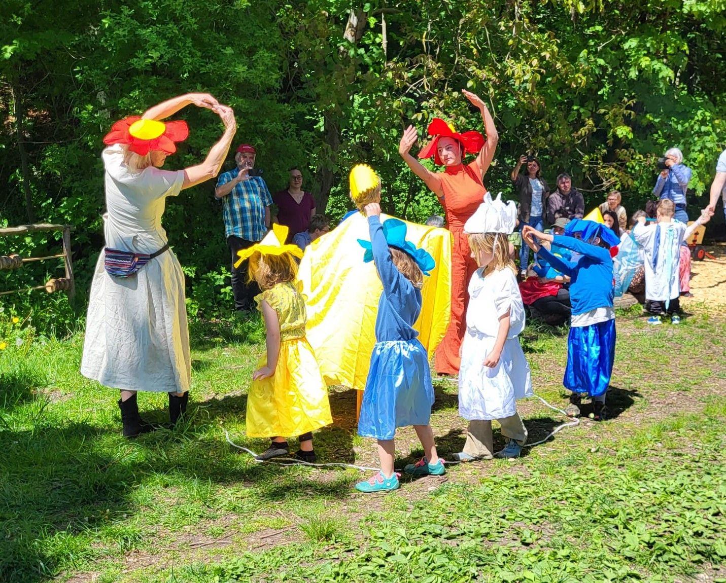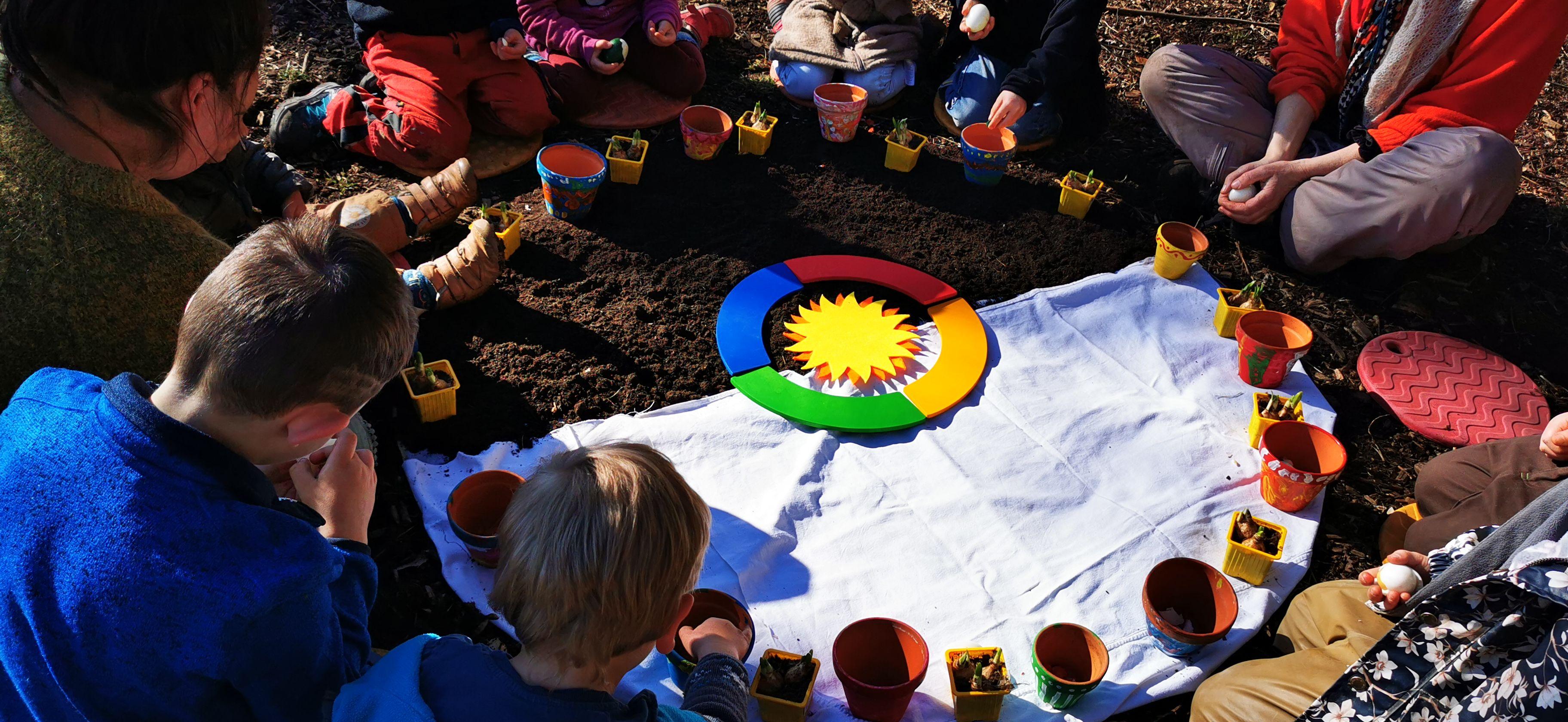 Mit einem Spiel, einem gemeinsamen Lied, einem Vers oder einfach in gemeinsam erlebter Stille wird der Abschlusskreis gestaltet. Dies ist der Platz, sich für die Erlebnisse eines schönen Tages, die einem geschenkt wurden, zu bedanken und sich zu verabschieden.