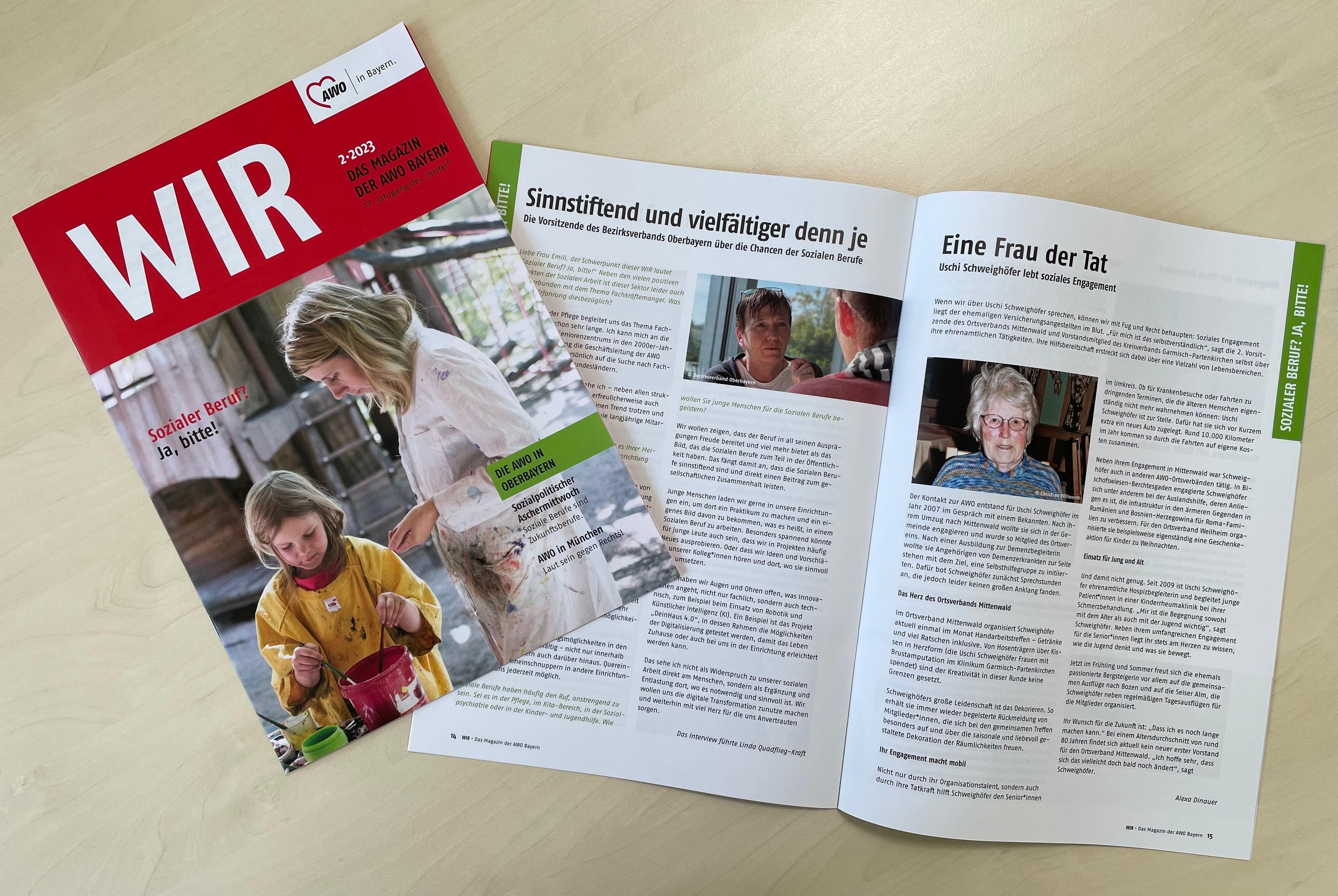 „Sozialer Beruf? Ja, bitte!" – so lautet das Schwerpunktthema der aktuellen Ausgabe unserer Mitgliederzeitschrift „Wir”. In ihrem Editorial schreibt Nicole Schley, Präsidentin der AWO Oberbayern: „Berufe in den sozialen Dienstleistungen sind ein wichtiger Grundpfeiler unserer Gesellschaft. In der Öffentlichkeit bekommen sie bislang jedoch nicht den Stellenwert, den sie verdienen.” Wir betrachten die Thematik im Magazin aus unterschiedlichen Perspektiven.