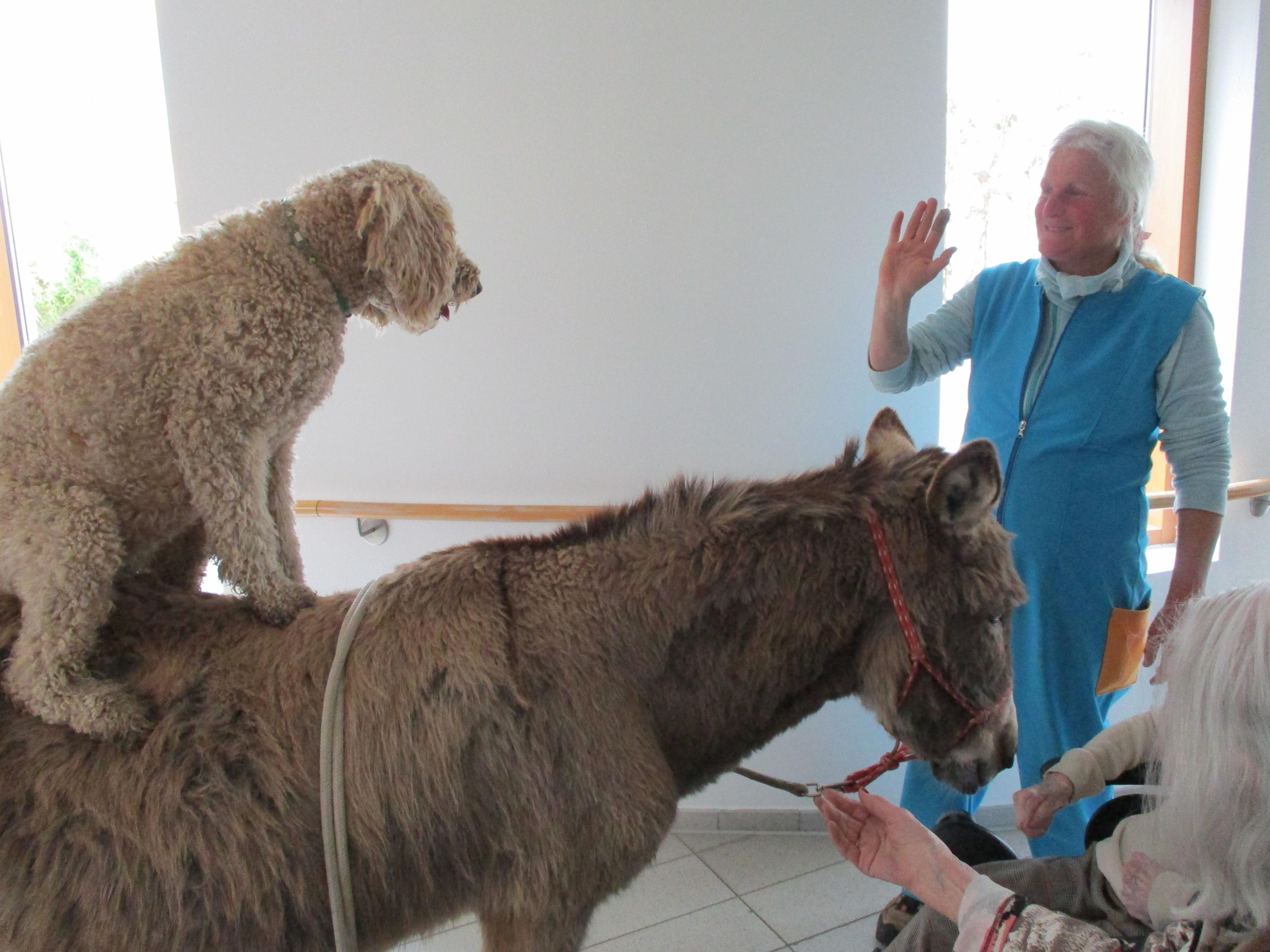 Die Bewohnerinnen und Bewohner waren über den tierischen Besuch sichtlich erfreut und begeistert.