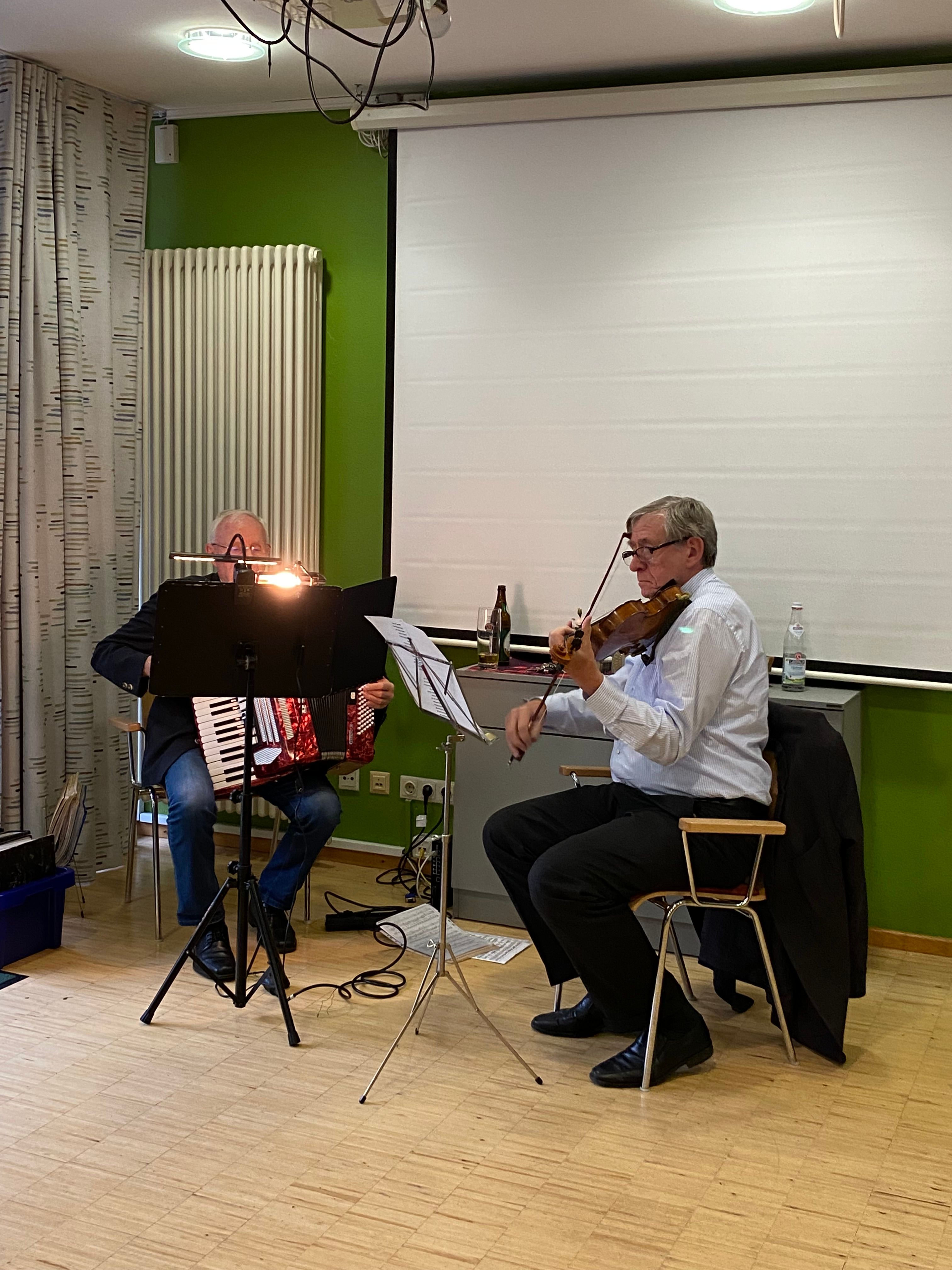 Wie gut Musik und Magie zusammen passen, haben Rudi Richter und Dr. Hans-Georg Zirngibl am 13. November 2024 in unserem Seniorenwohnpark gezeigt: Dr. Zirngibl brachte das Publikum mit verschiedensten magischen Tricks zum Staunen: So fügte er zum Beispiel ein zerschnittenes Seil wieder zu einem Ganzen zusammen, ließ Bälle, Tücher und andere Gegenstände verschwinden und plötzlich wieder auftauchen, zauberte beliebig Goldmünzen aus Jackentaschen oder hinter den Ohren der Bewohnerinnen und Bewohner hervor und überraschte auch mit einem besonderen Kartentrick. Mit Humor, Redekunst und Einbezug der Mitarbeitenden zur Assistenz sorgte er für viele Lacher, verblüffte Gesichter und lauten Applaus. Umrahmt wurde die Zauberdarbietung vom Zauberer selbst an der Geige und mit Gesang und Akkordeonmusik von Herrn Richter, der unsere Bewohnerinnen und Bewohner schon seit einiger Zeit bei Veranstaltungen in unserem Haus mit seiner Musik begeistert! Der Einladung zum gemeinsamen Singen wurde vom Publikum selbstverständlich sehr gerne gefolgt, was die Vorstellung perfekt abrundete.