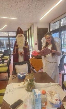 “Hohoho”, tönte es über die Flure- denn “drauß vom Walde”, da kam der Nikolaus daher mit seinem Engelein. An diesem 6. Dezember überraschte unser Duo aus der Sozialen Betreuung Bewohner/-innen und Mitarbeitende. Über die Wohnbereiche tönte das Weihnachtsoratorium bevor der Nikolaus im Speisesaal landete, ein Gedicht zum Mitsprechen dabei hatte und dann unter den Klängen von “Lasst uns froh und munter sein”, seine Geschenke austeilte. Auch die Bewohner/-innen, die nicht aufstehen konnten, freuten sich über den Besuch am Bett.