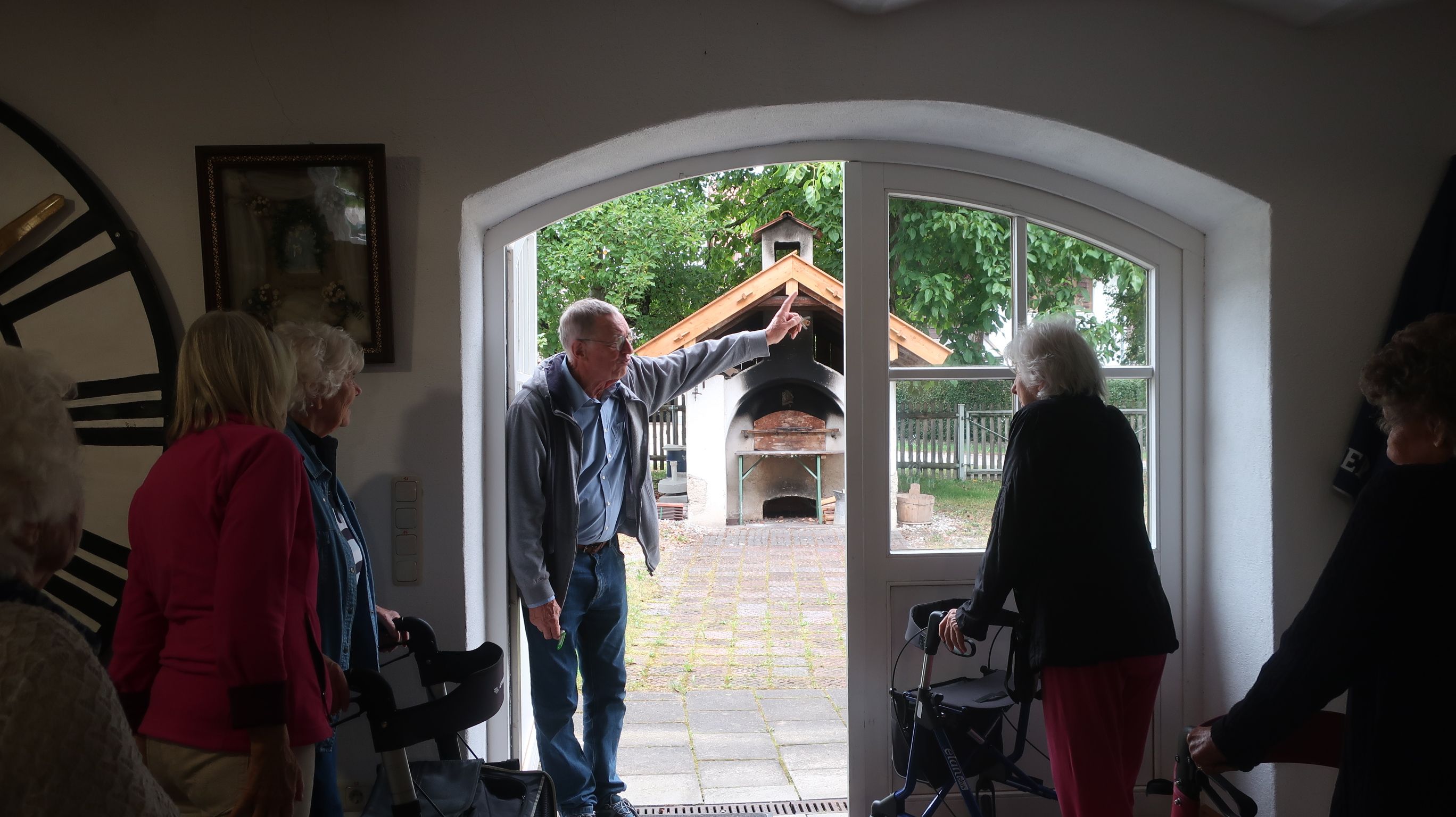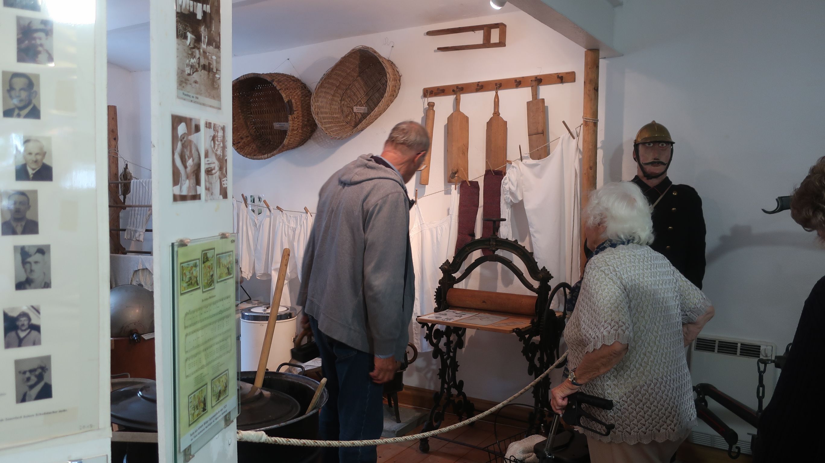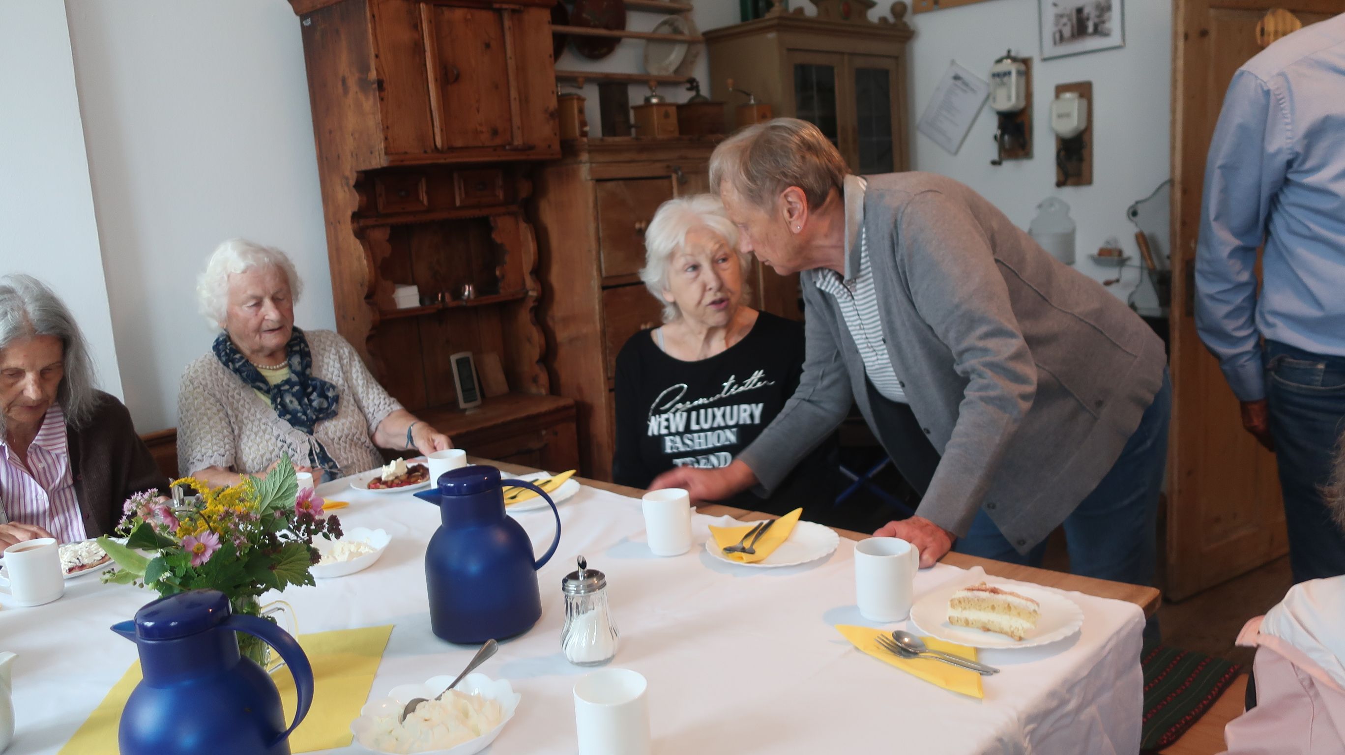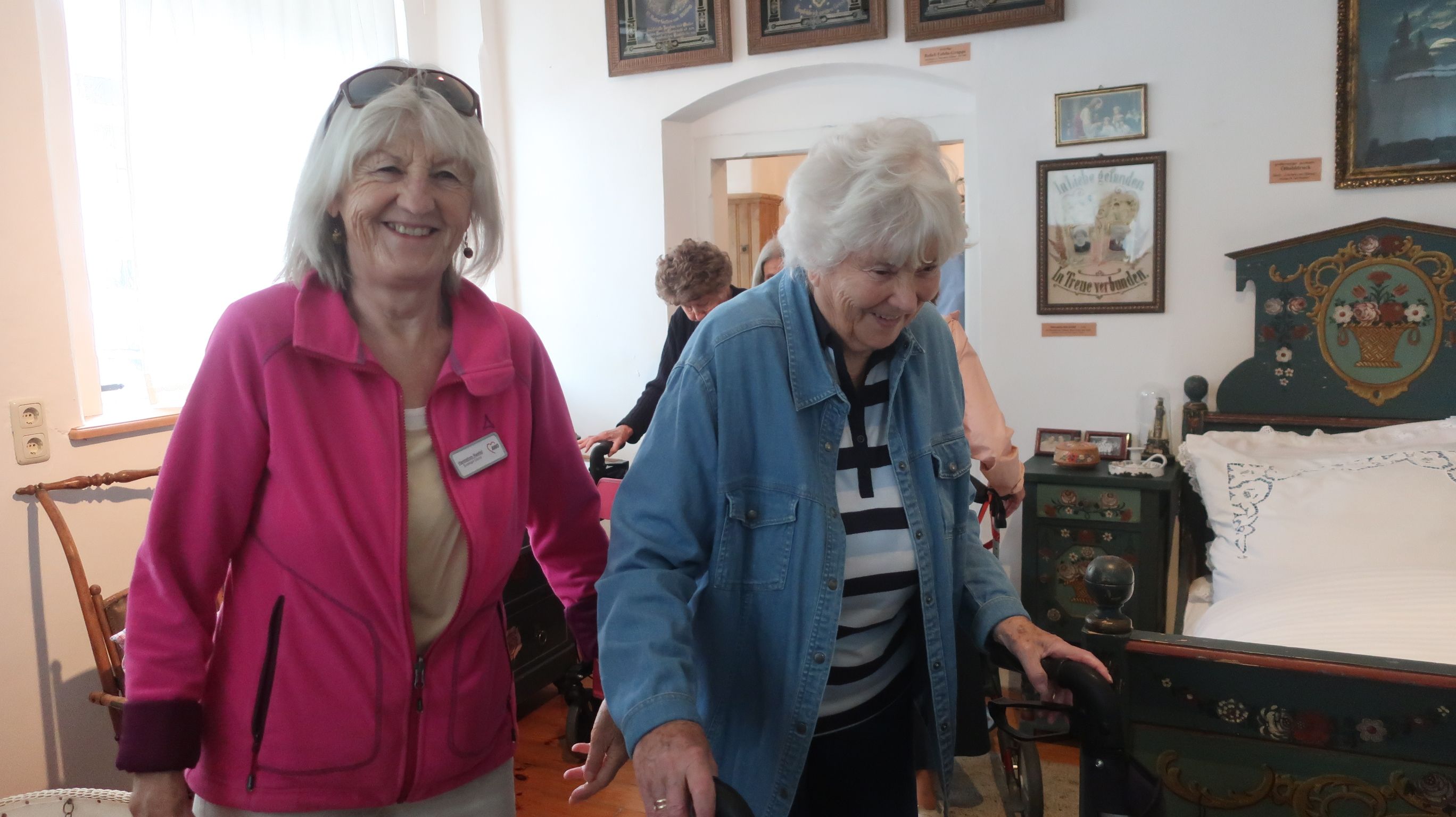 Dort wurden wir von den ehrenamtlichen Mitarbeiter*innen des Heimatmuseums herzlich empfangen und wir konnten das liebevoll restaurierte Museum besichtigen. Die drei Gebäude, der ehemalige Pfarrhof von 1682, der alte “Troadkasten” (Getreidespeicher) und der Bundwerkstadl (mit einer alten Webstube) befindet sich auf dem Gelände. Herr Dembeck erzählte uns ausführlich und detailliert über die Geschichte und das Brauchtum früherer Zeiten, wobei in der Schusterwerkstatt und im Volksschulzimmer, jeder unserer Bewohner*innen eine kleine persönliche Geschichte dazu erzählen konnte.